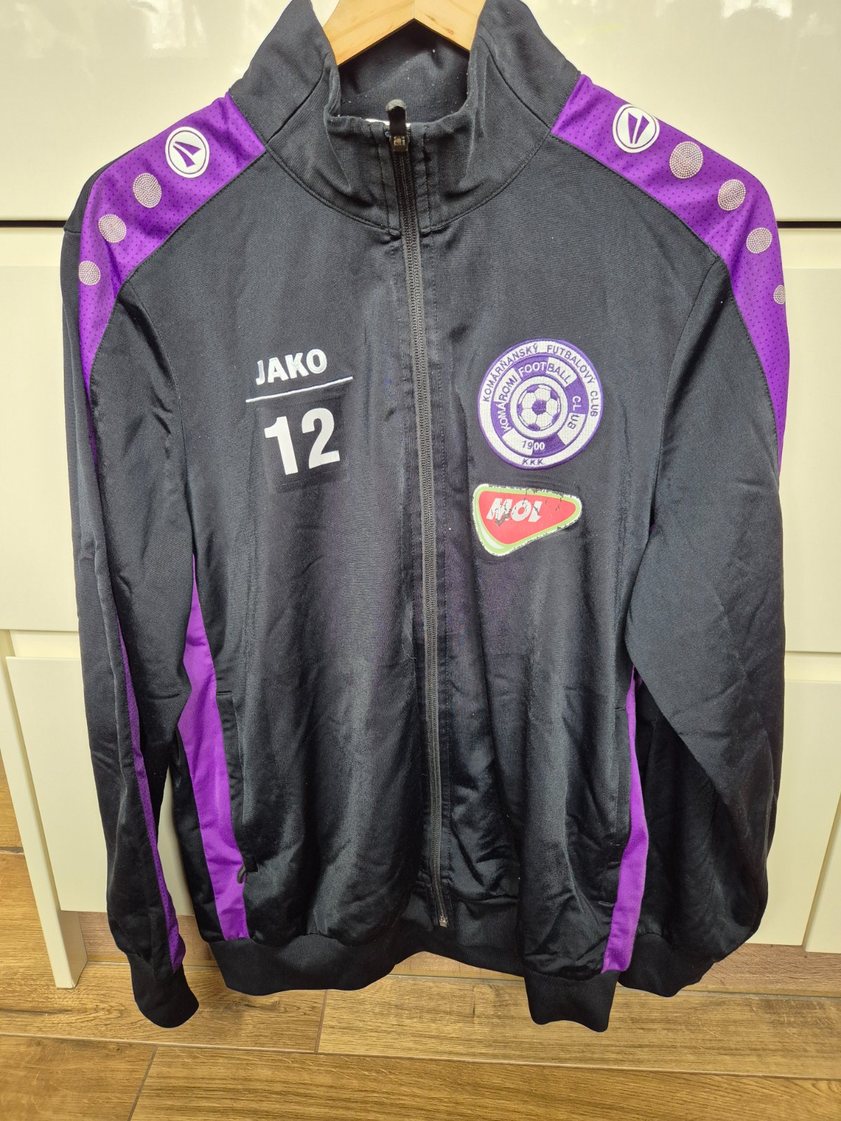 Oranžová panská mikina ADIDAS veľkosť M na zips. Vprdu dve vrecká na zips. Dĺžka mikiny je 65 cm, rukáv od ramená má 62 cm, šírka v prsiach je 112 cm. Mikina má pri vrecku a na pravom rukáve čierne...