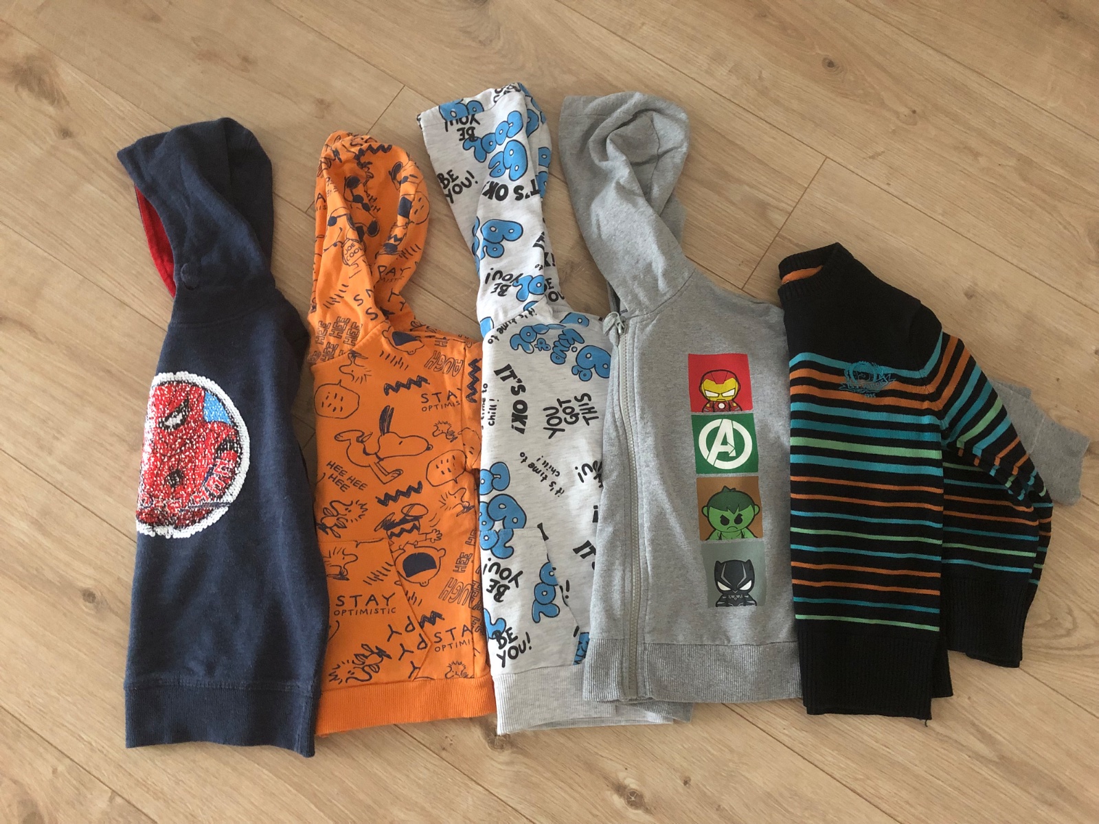 So zipsom su Sinsay, modra ma premienaci obrazok Spiderman a potom je tam tensi pulovrik.