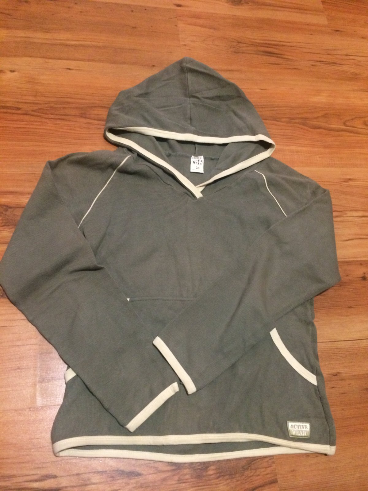 Predám dievčenskú mikinu olivovej farby, tenká kvalita. Veľkosť : 36, značka heine. Cena: 3,50 eur.