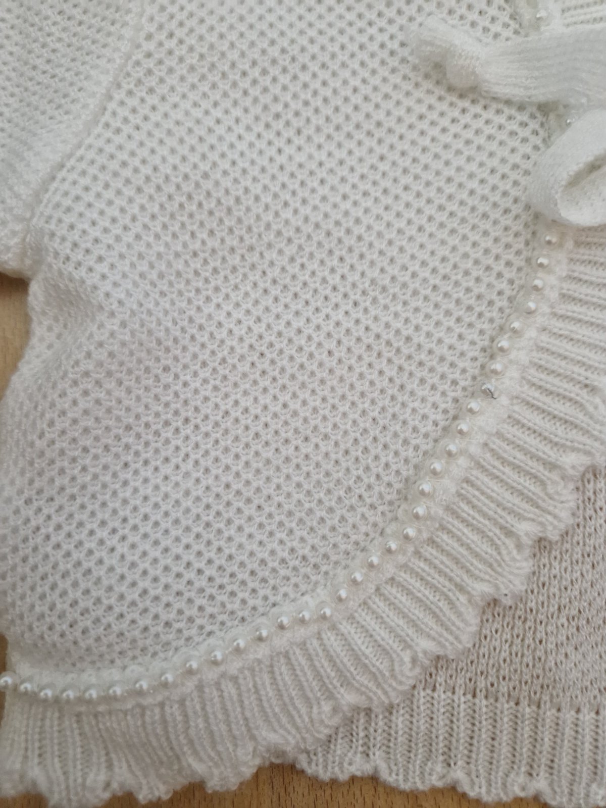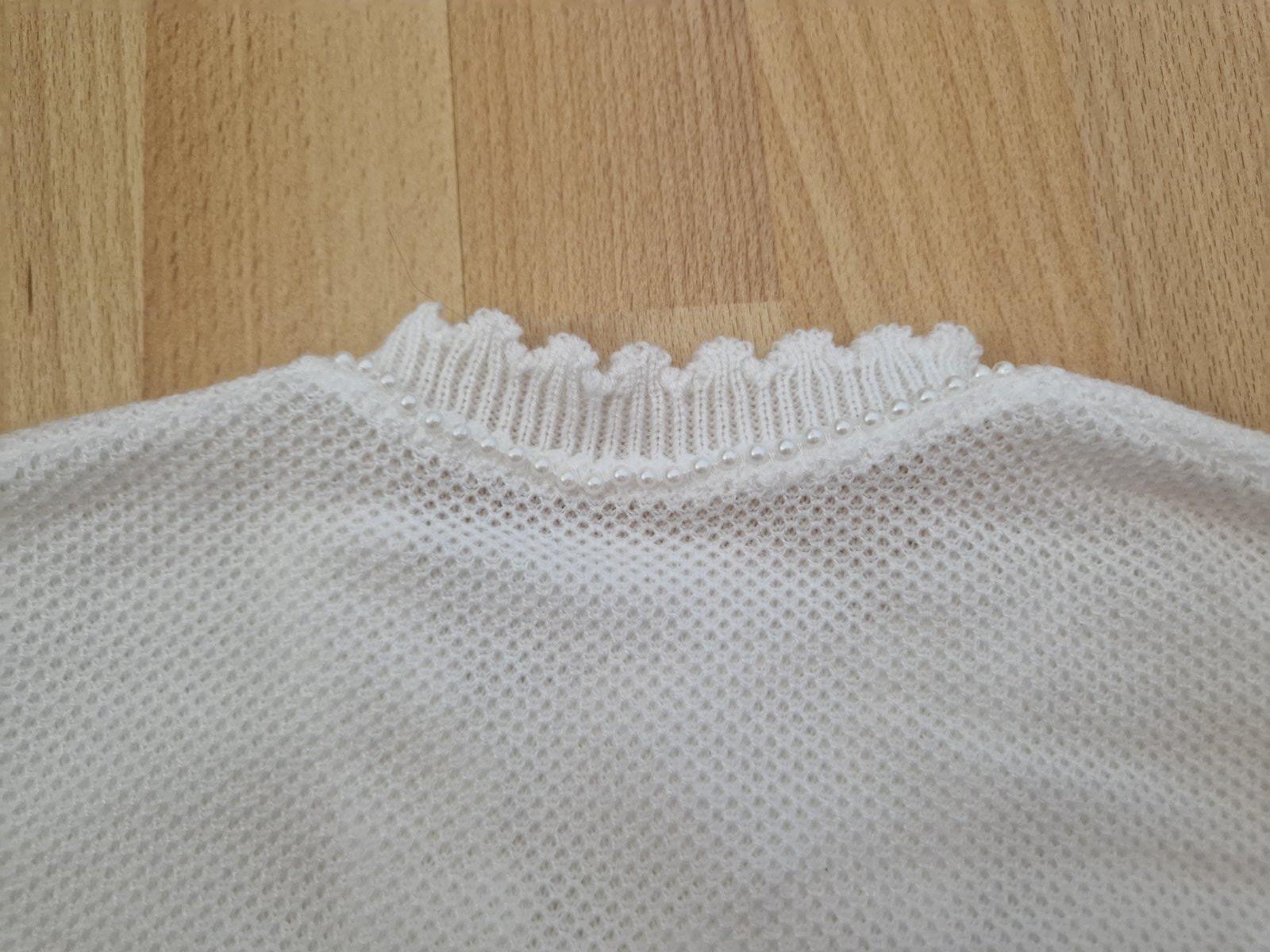 Krátky svetrík vhodný na spoločenské šaty, ozdobený perličkami. V TOP stave.