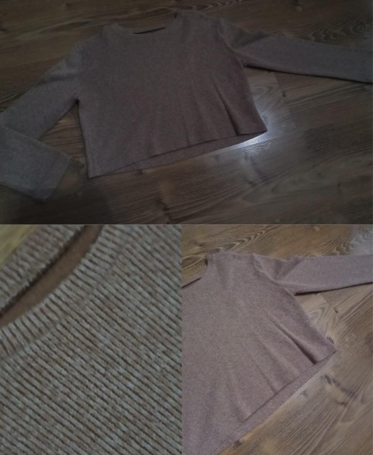 farba je hnedá s ružovkastým nádychom. Dlhý 45cm, rukáv 55cm , šírka pod pazuchou 51cm x2, spodok 49,5cm x 2. Pulovrik bol málo nosený rýchlo odrastený.