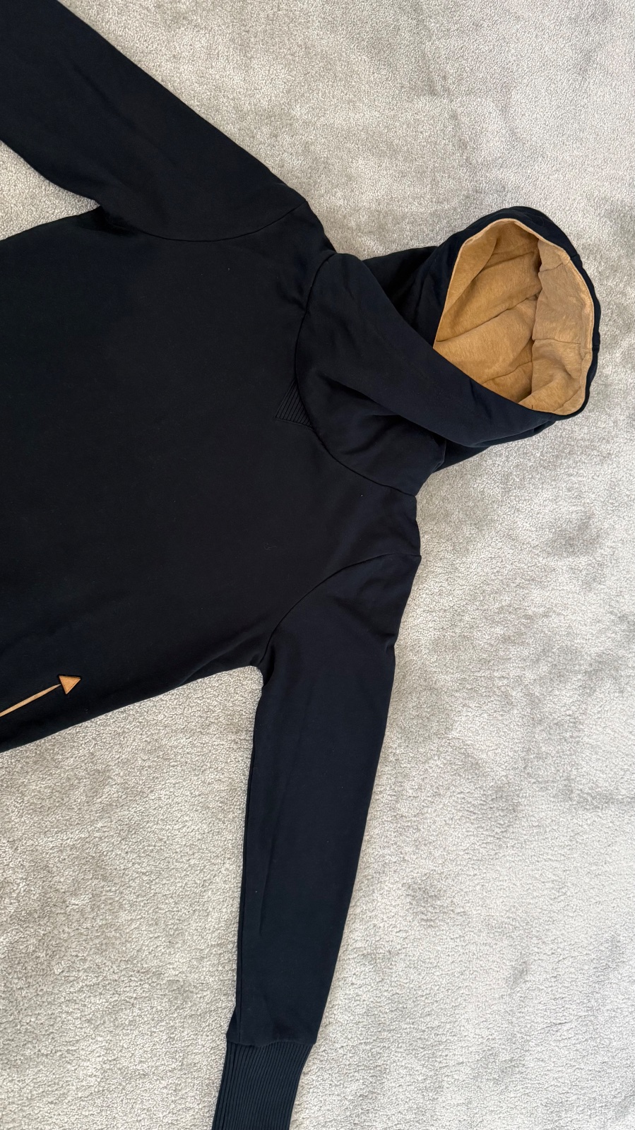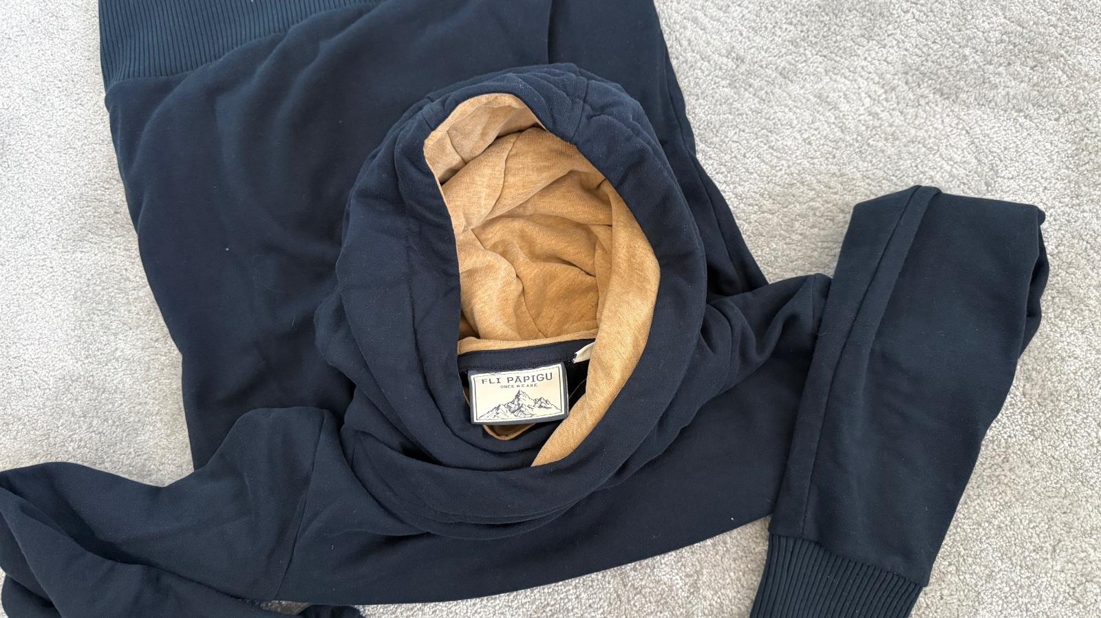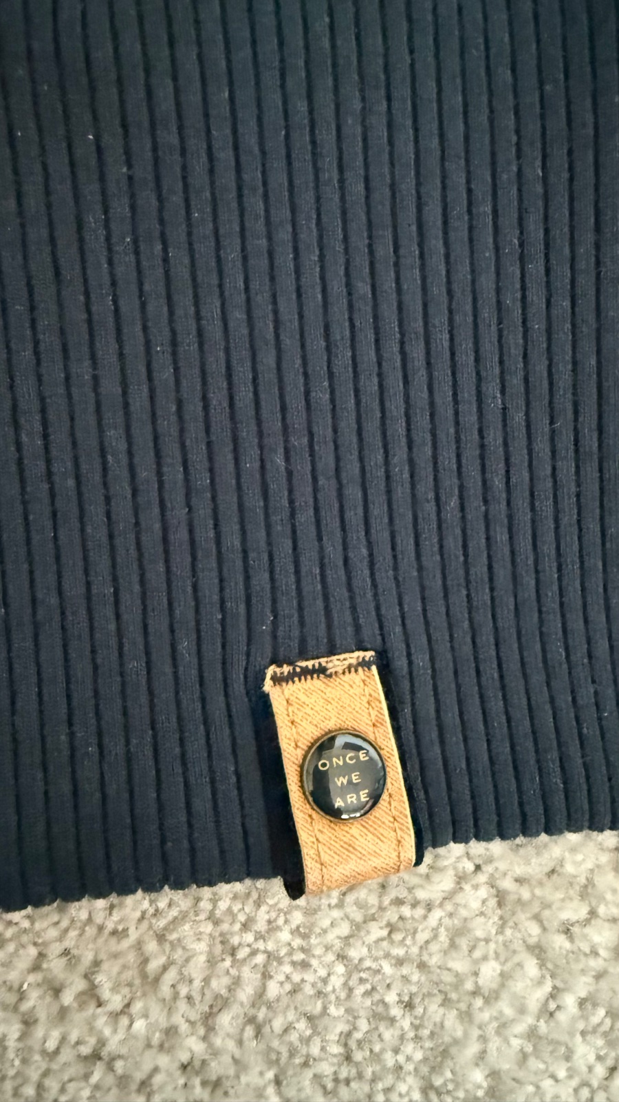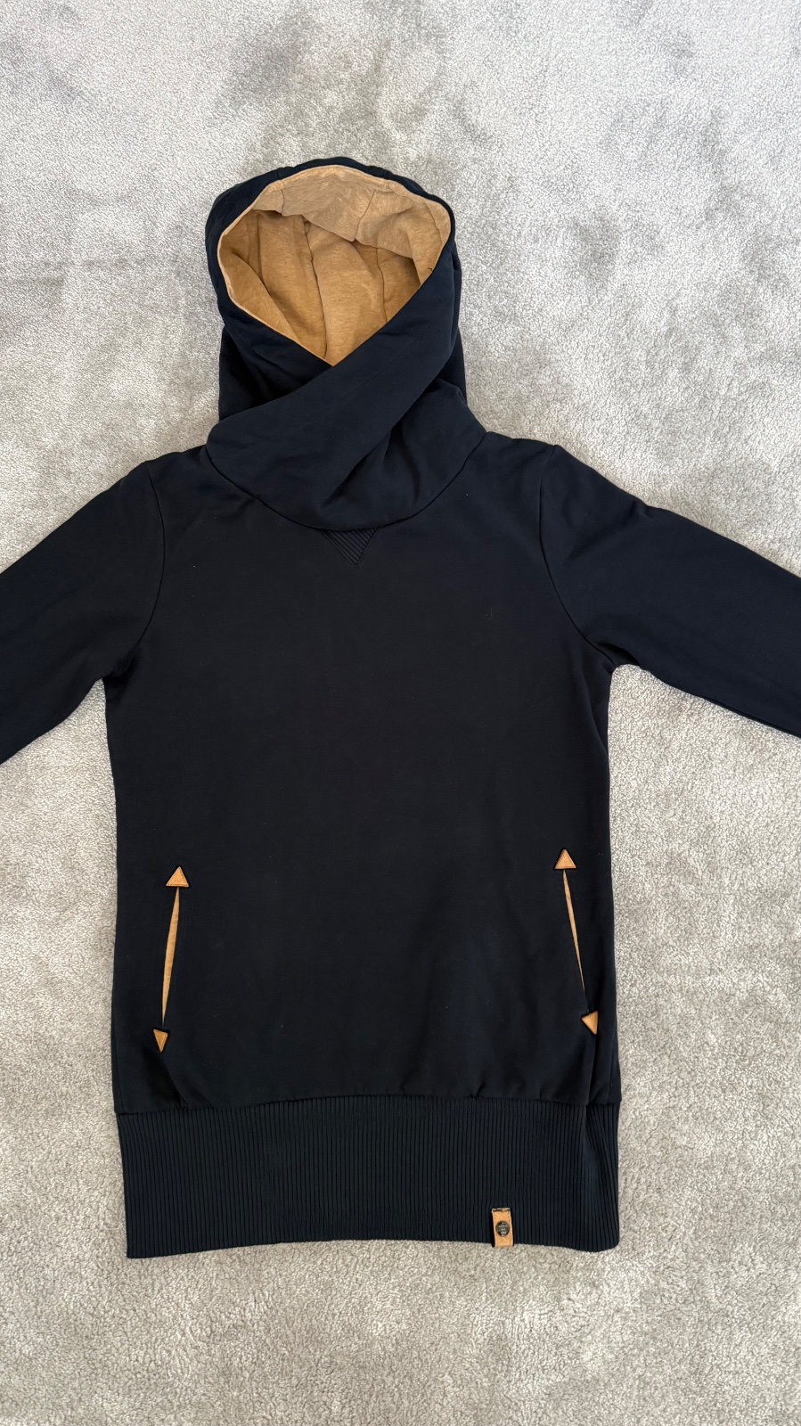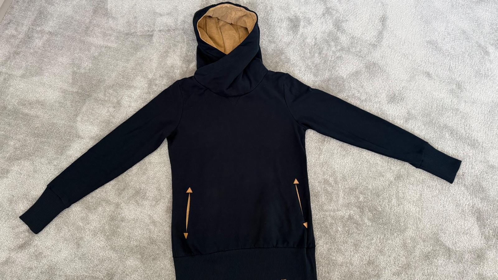 Nadherna namornicky modra predlzena mikina kombinovana s ťavou hnedou