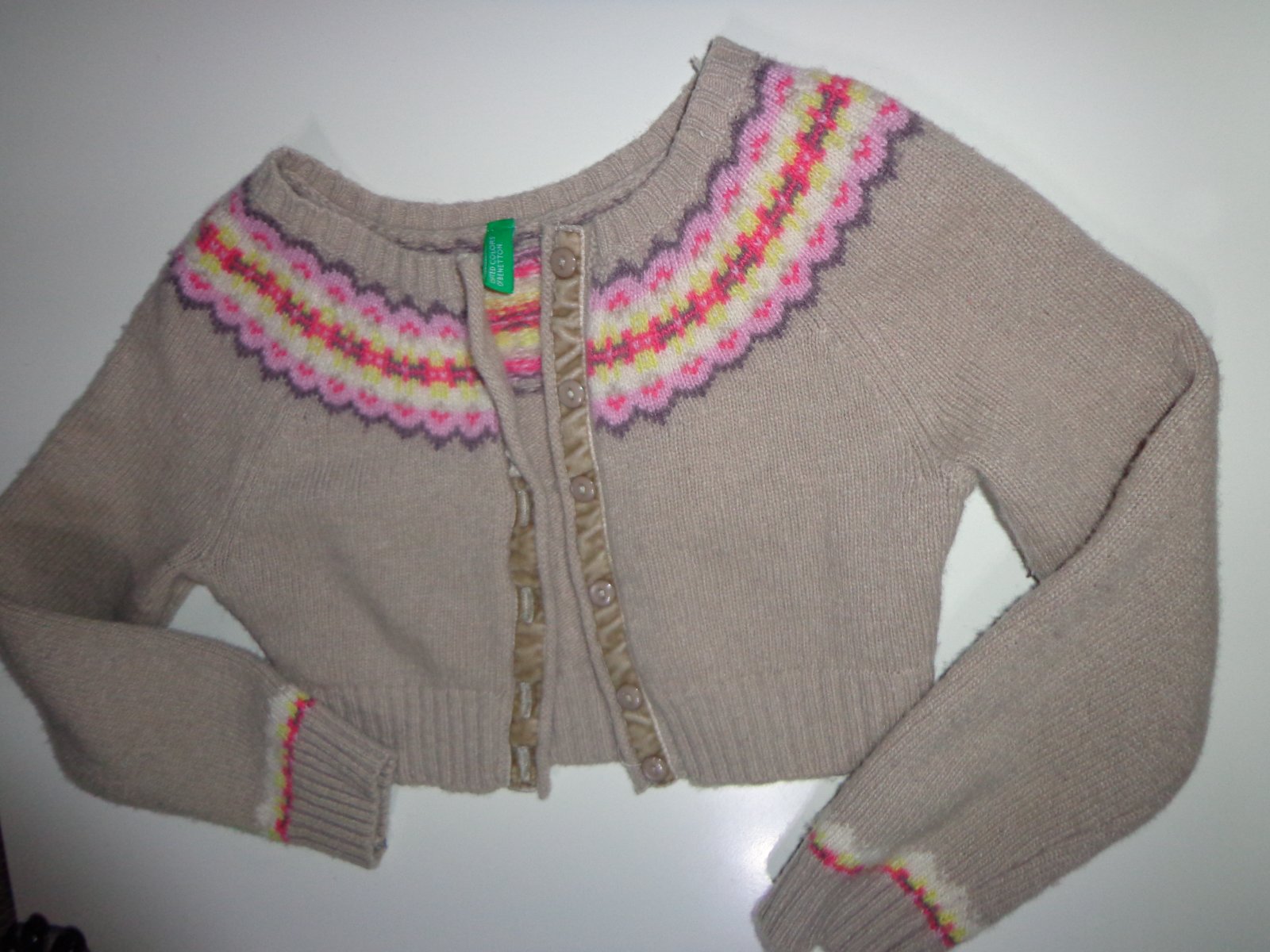 Kratší teplejší svetrík Benetton ich vel.xs,110, 4-5rokov,top stav
