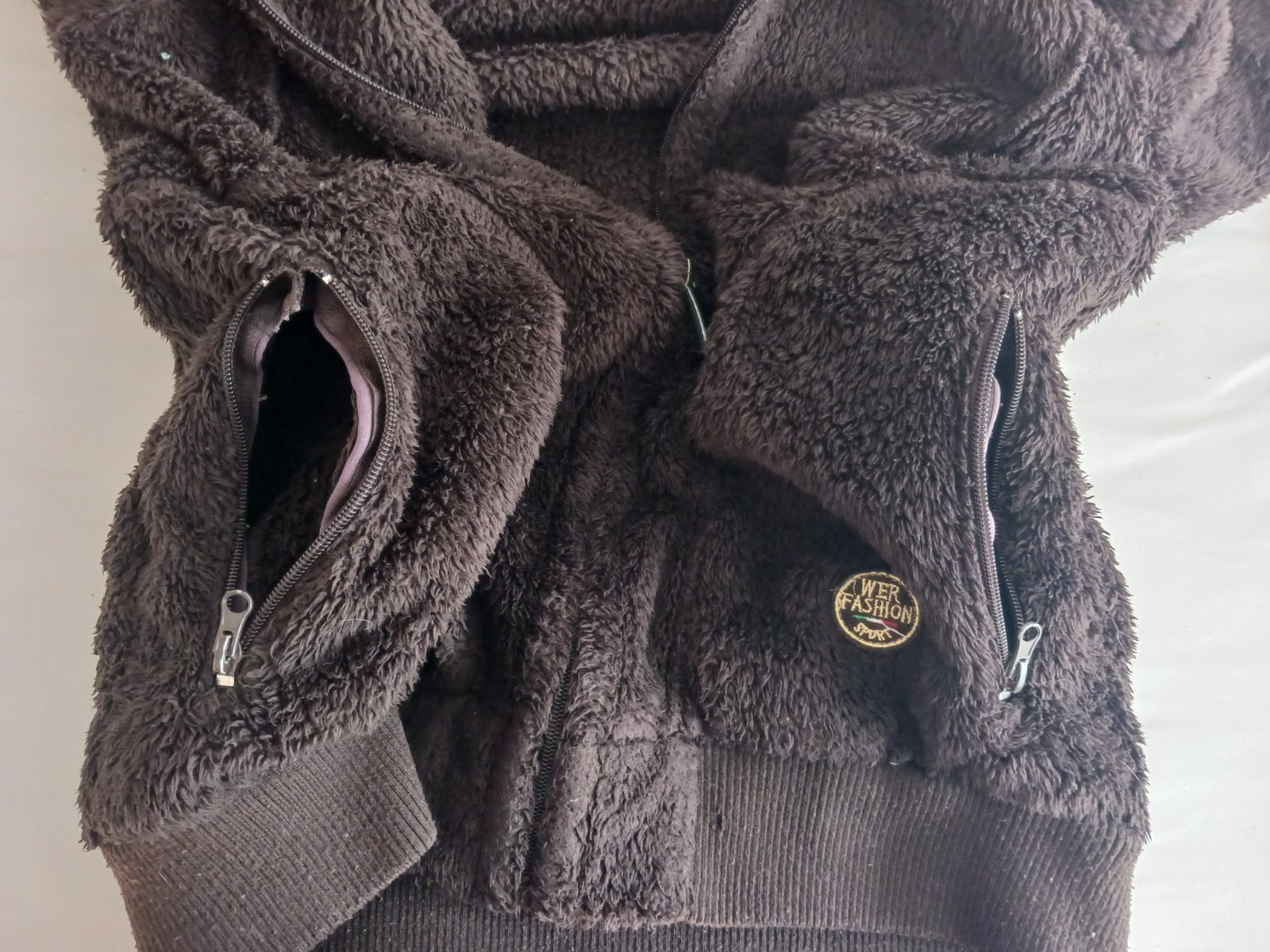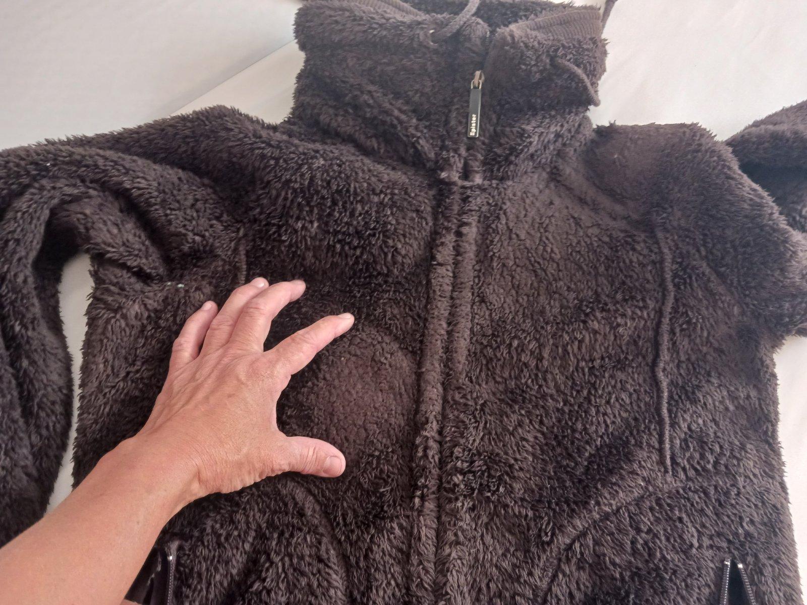 Nosená, na prednej časti vidieť nosenie. Kapucňa schovaná v golieri. K akémukoľvek nákupu rada darujem.