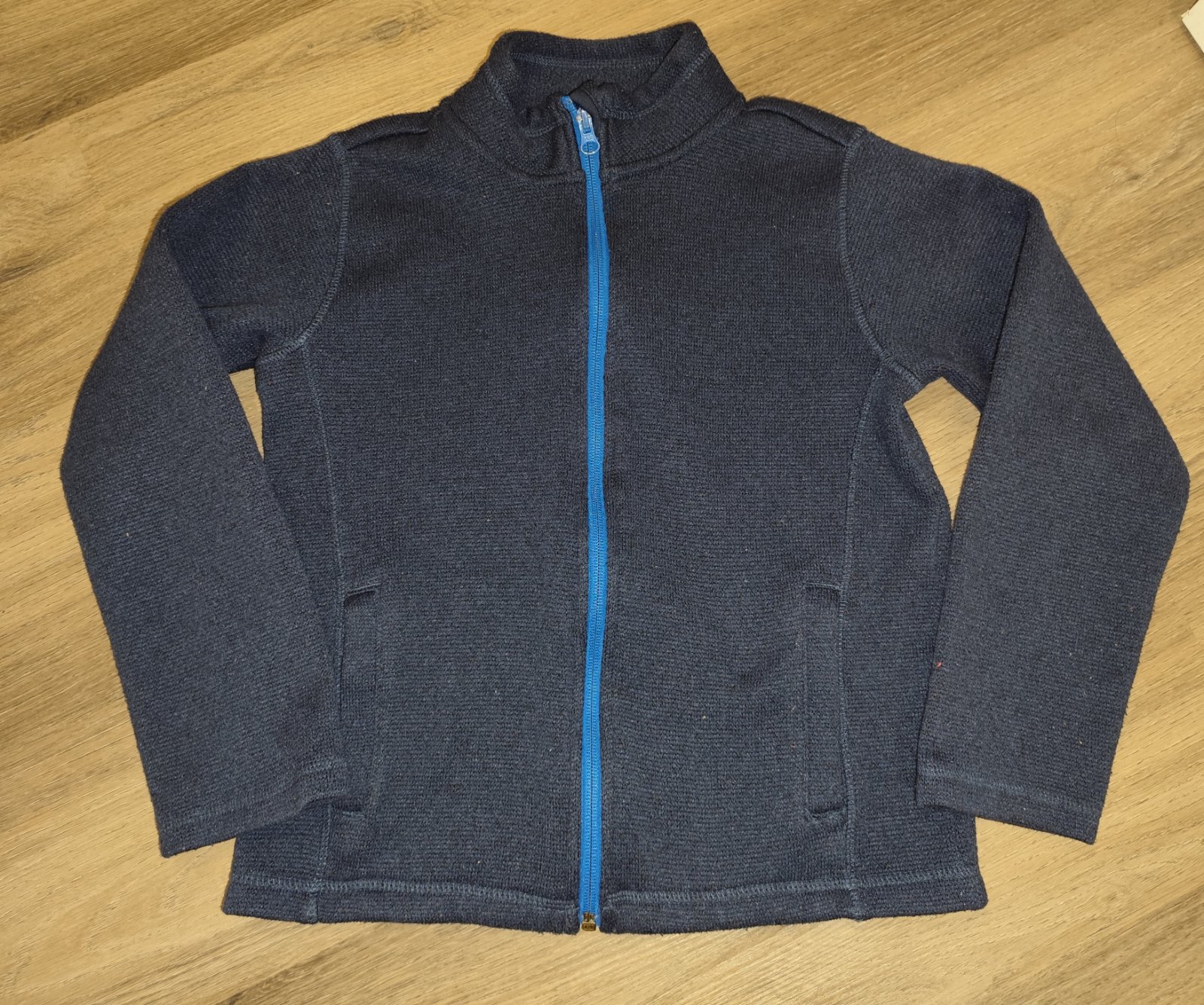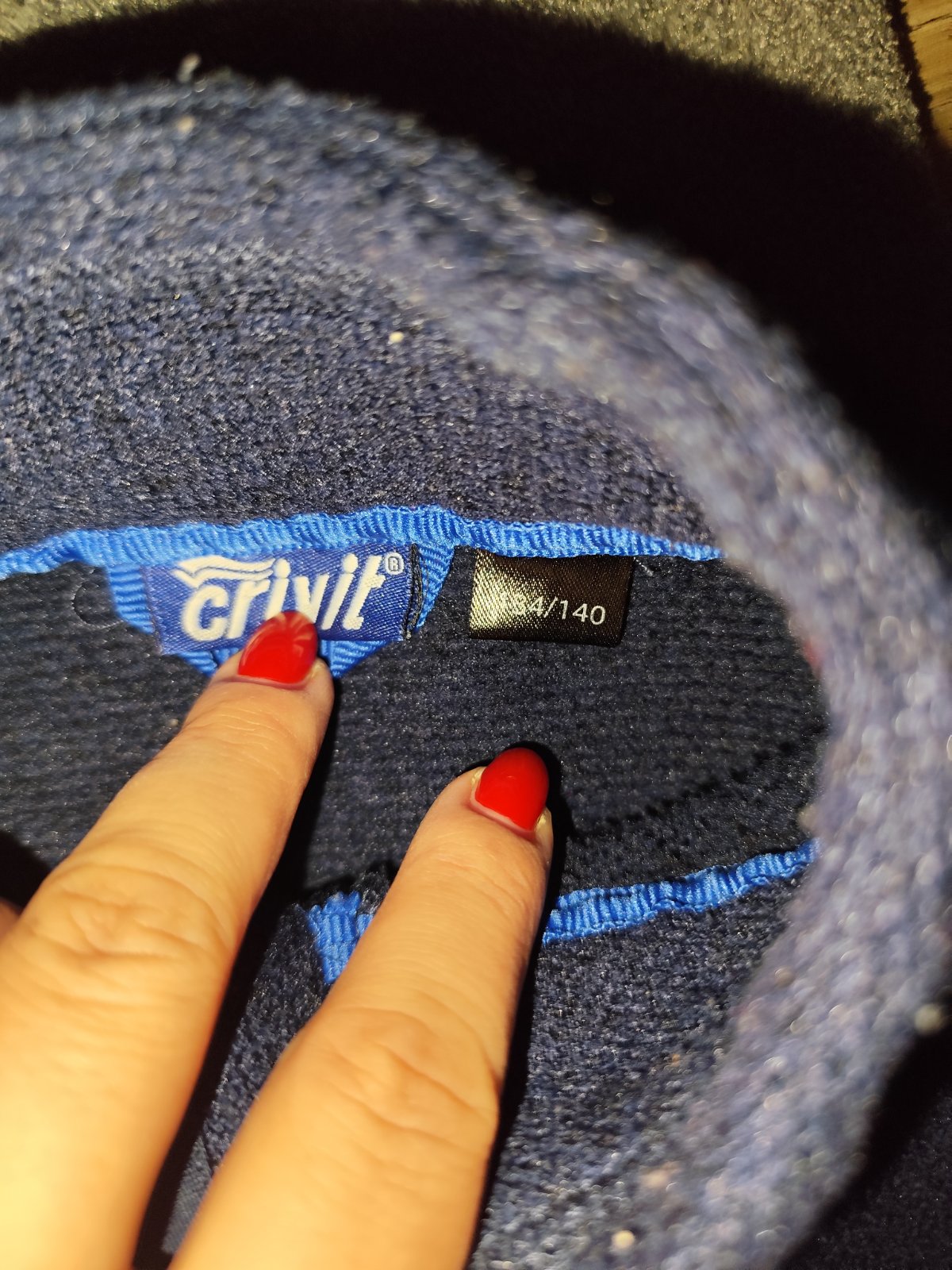 Tmavomodrá mikina je značky crivit, veľkosť na štítku uvedená 133/140.