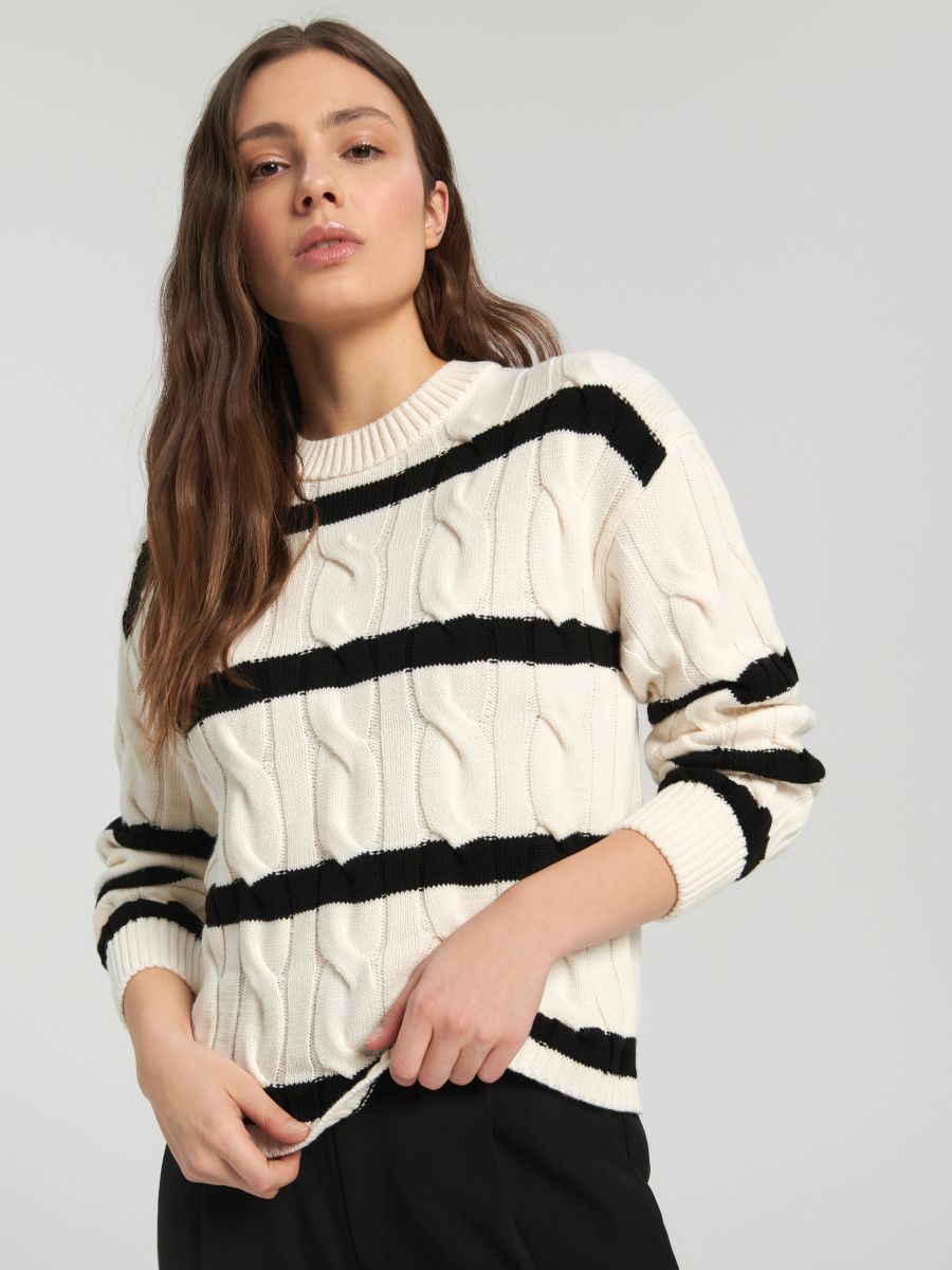 Pruhovany kremovy sveter
