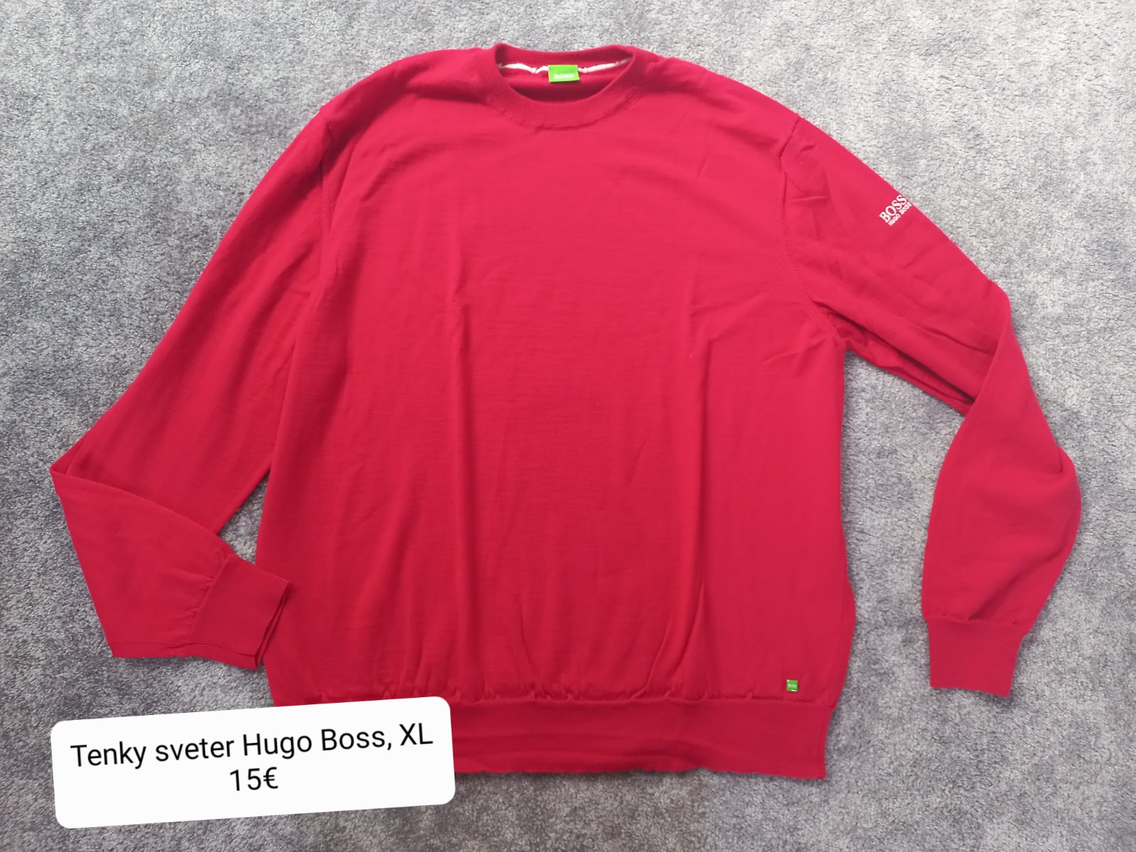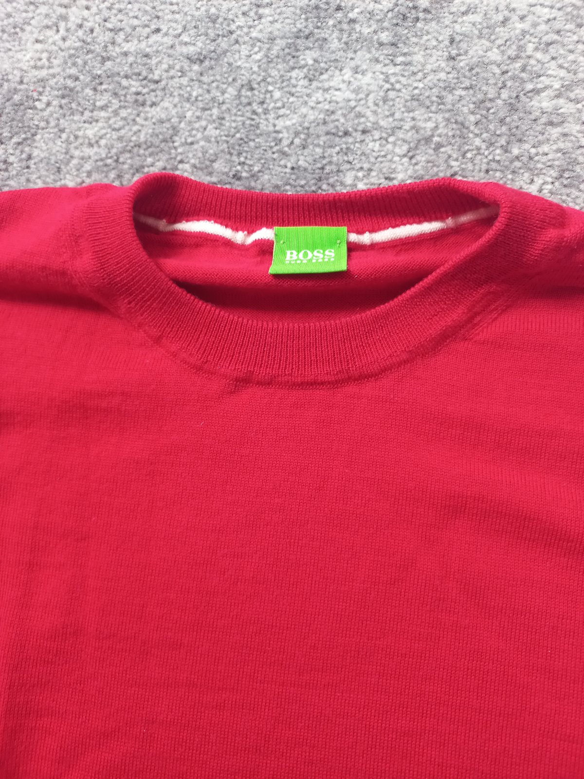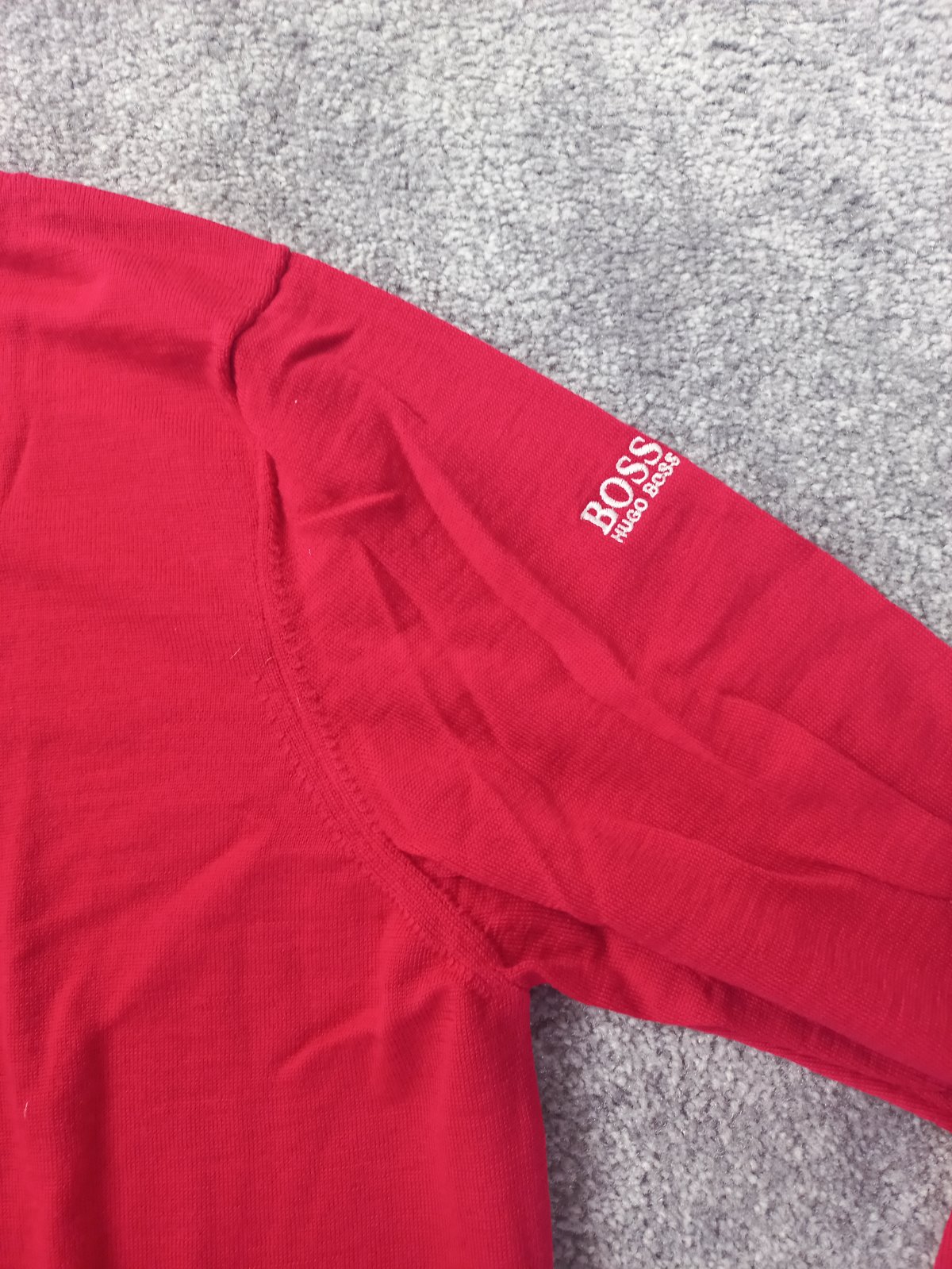 Malo noseny tenky vlneny sveter znacky Hugo Boss, velkost XL, v skutocnosti tmavsia cervena ako na foto.