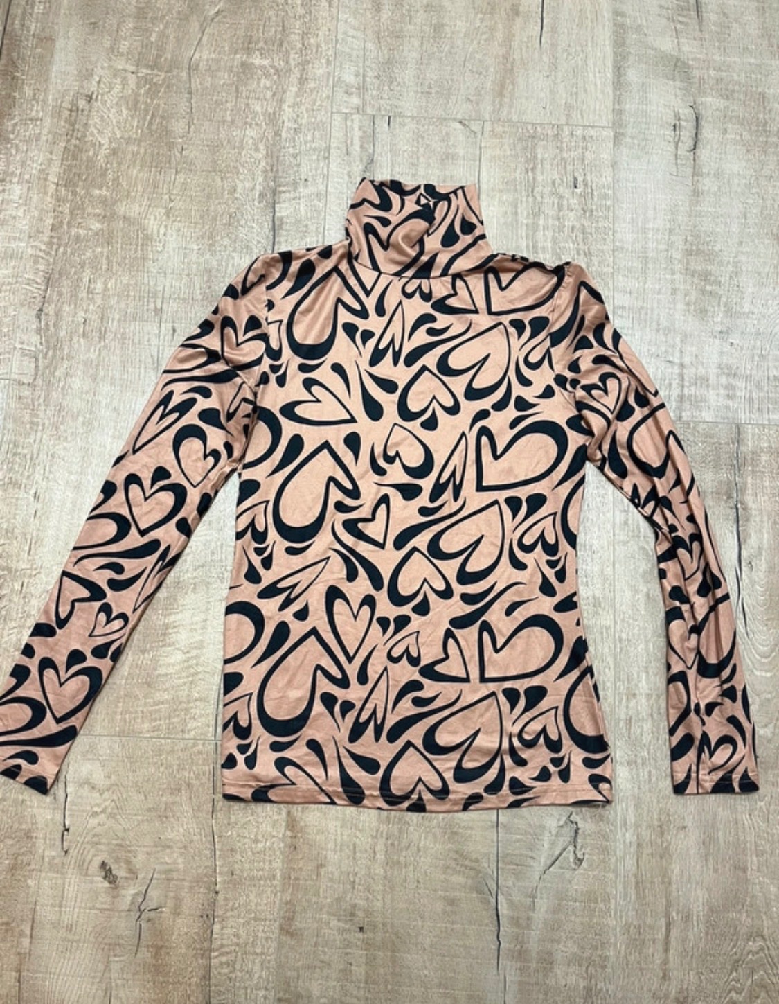 Farba je taká škoricová , oblečený párkrát dcérka rýchlo vyrástla. Značku už neviem materiál je príjemný mäkký elastický poddajný. Veľkosť sadne na XS/S .