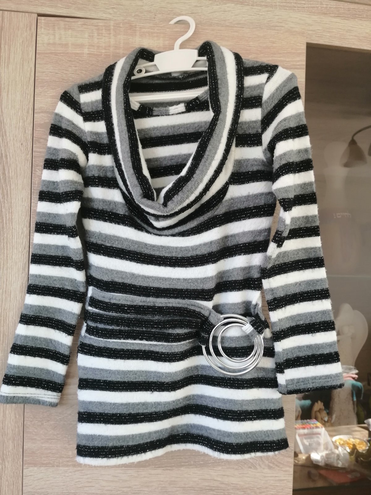 krásna bavlnená mäkkučká tunika s ozdobným golierom a so sponou v páse, dĺžka rukáva od krku 52 cm, šírka 2x33 cm, pružná prispôsobivá, dĺžka 56 cm