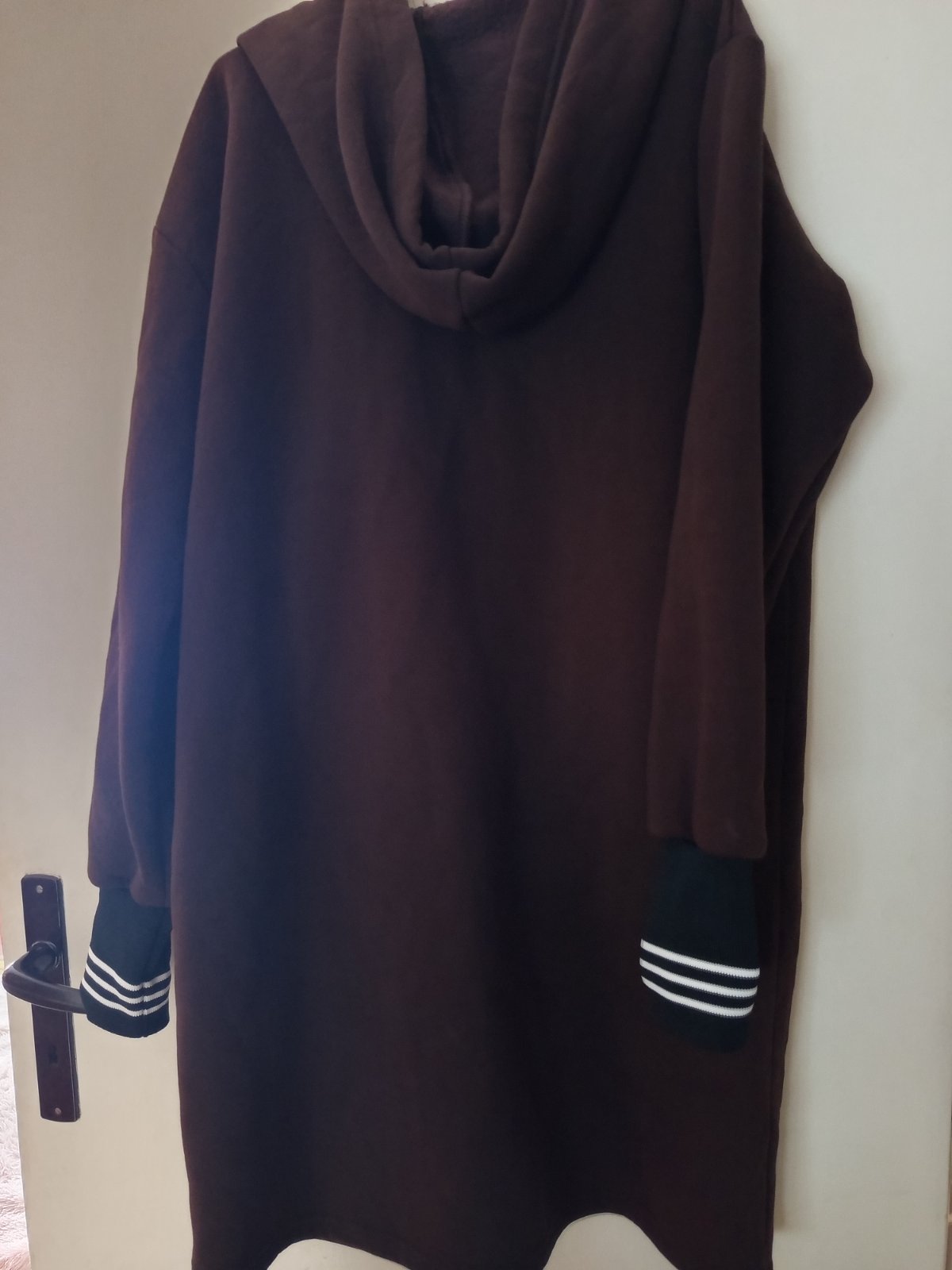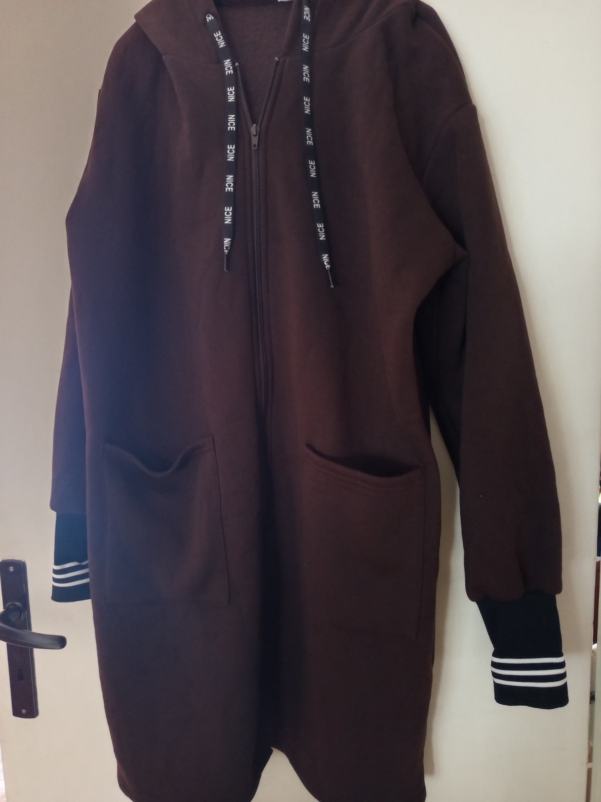 Minimálne asi dvakrát oblečená mikina, značky ESMARA,veľkosť 46, šírka pod pazuchami je 2x59, cez pás 2x55, u spodu 2x51cm. Dĺžka 72cm a dĺžka rukáva od krku 78cm.