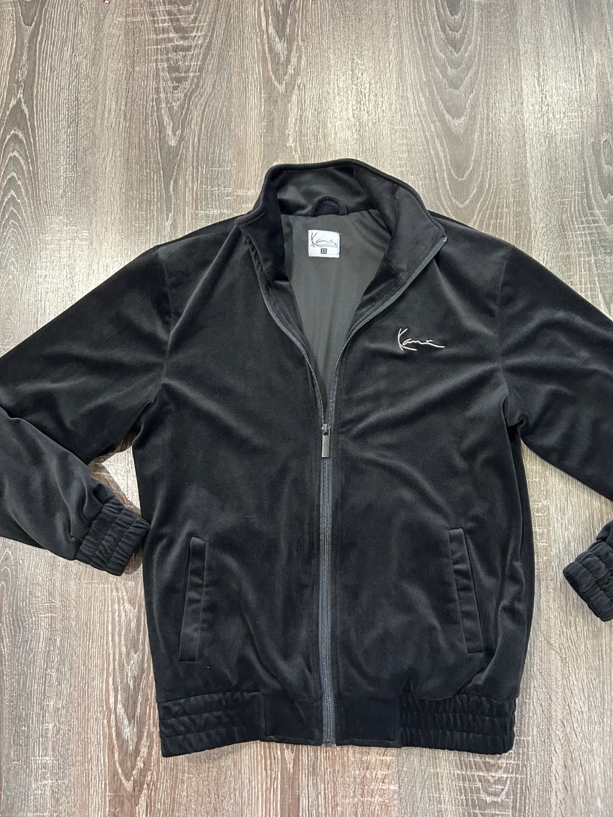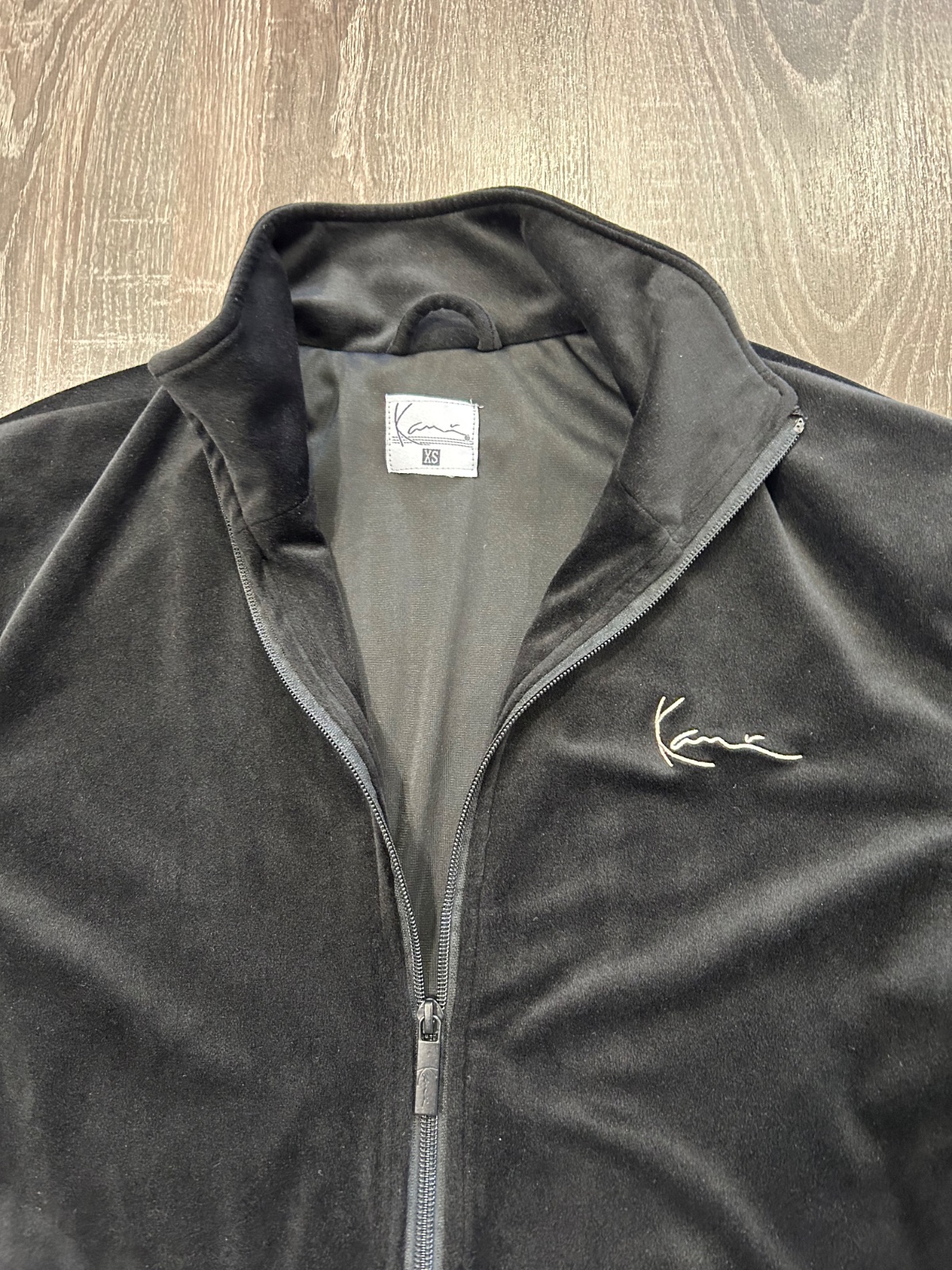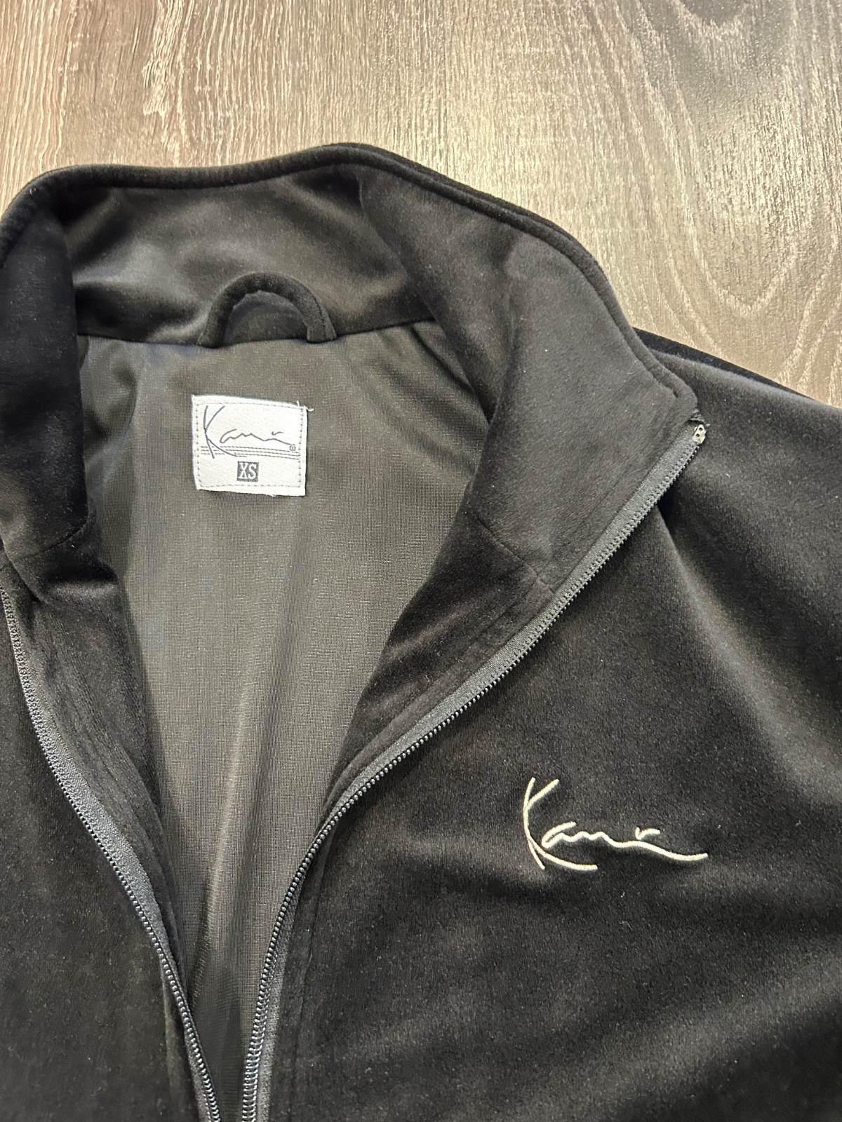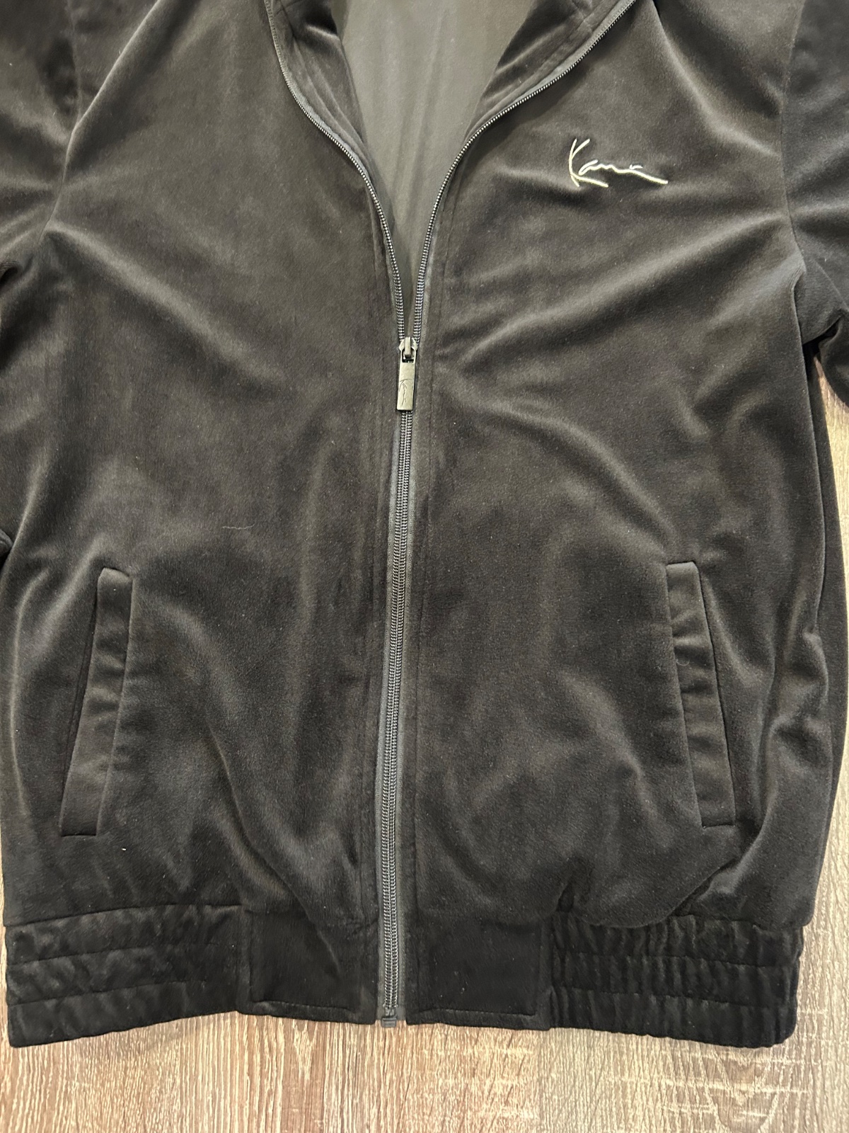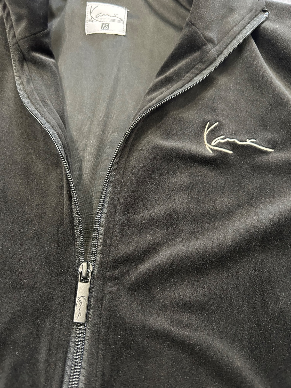 62.Karl Kani damska zamatova mikina,velkost XS no sadne aj na S,bez poskodeni,2vrecka….dlzka od ramena dole je 67cm,dlzka rukava od krku je 77cm a sirka v podpazusi je od 50x2cm do 63x2cm