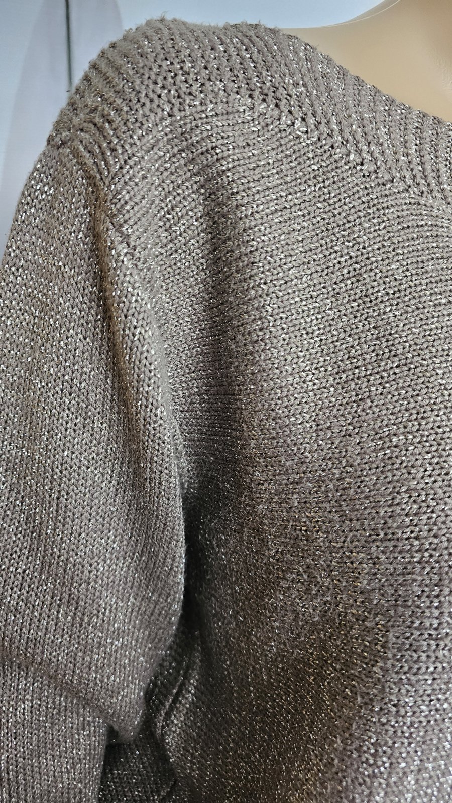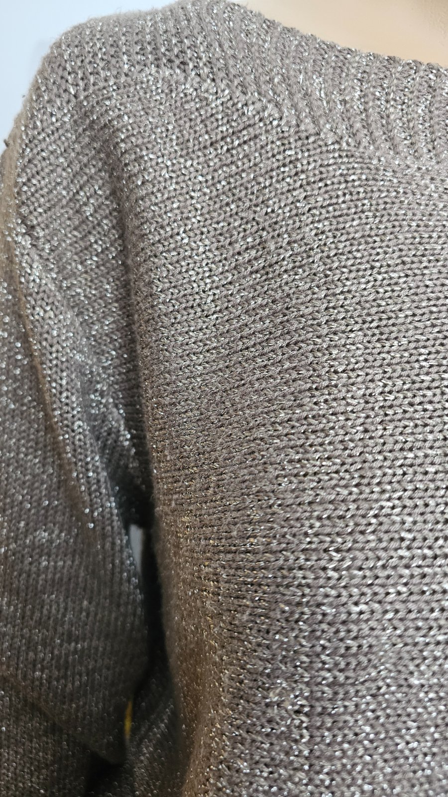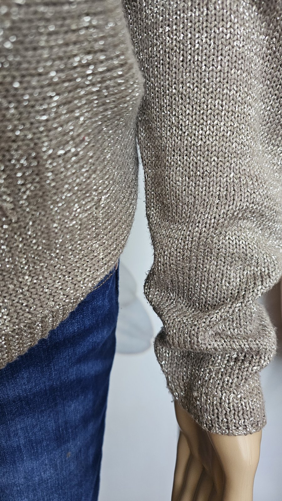 Výborný stav. Dĺžka 63 cm, šírka v hrudníku 49x2 cm. 6% viskóza, 35% metalické vlákno. Zn. Yessica pre C&A. Príjemný hrejivý a nepichľavý materiál.