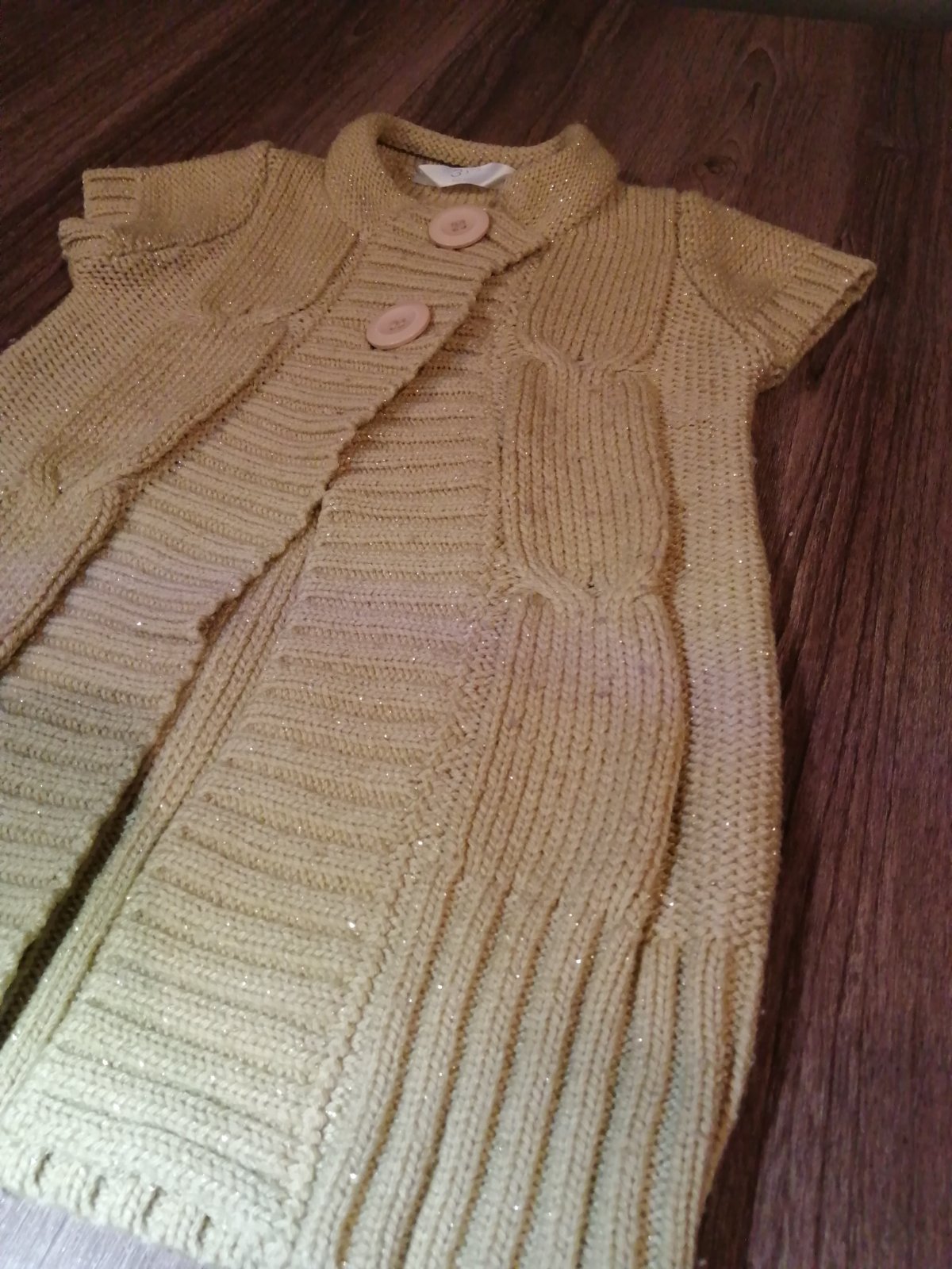 Pelerina s krátkym rukávom z pleteniny, naživo krásne trblietavá, na zapínanie, zohreje chrbatik.