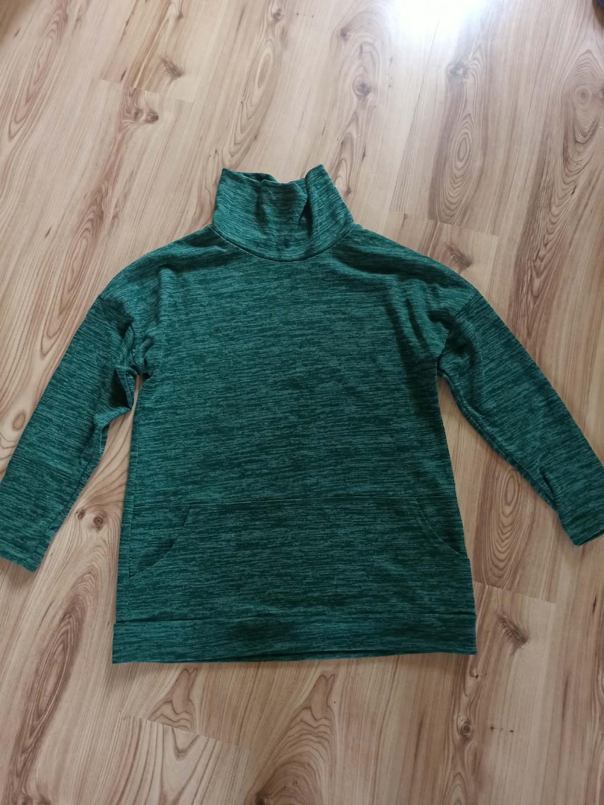 Tenšia mikina so zaujímavým golierom v dobrom stave. Nebola veľmi nosená. Veľkosť písaná XL, ale skôr L. Cez prsia 49 cm, dĺžka 65 cm, rukáv 68 cm. 95% bavlna, 5% elastan. 5€ + pošta. Kuk aj ostat...