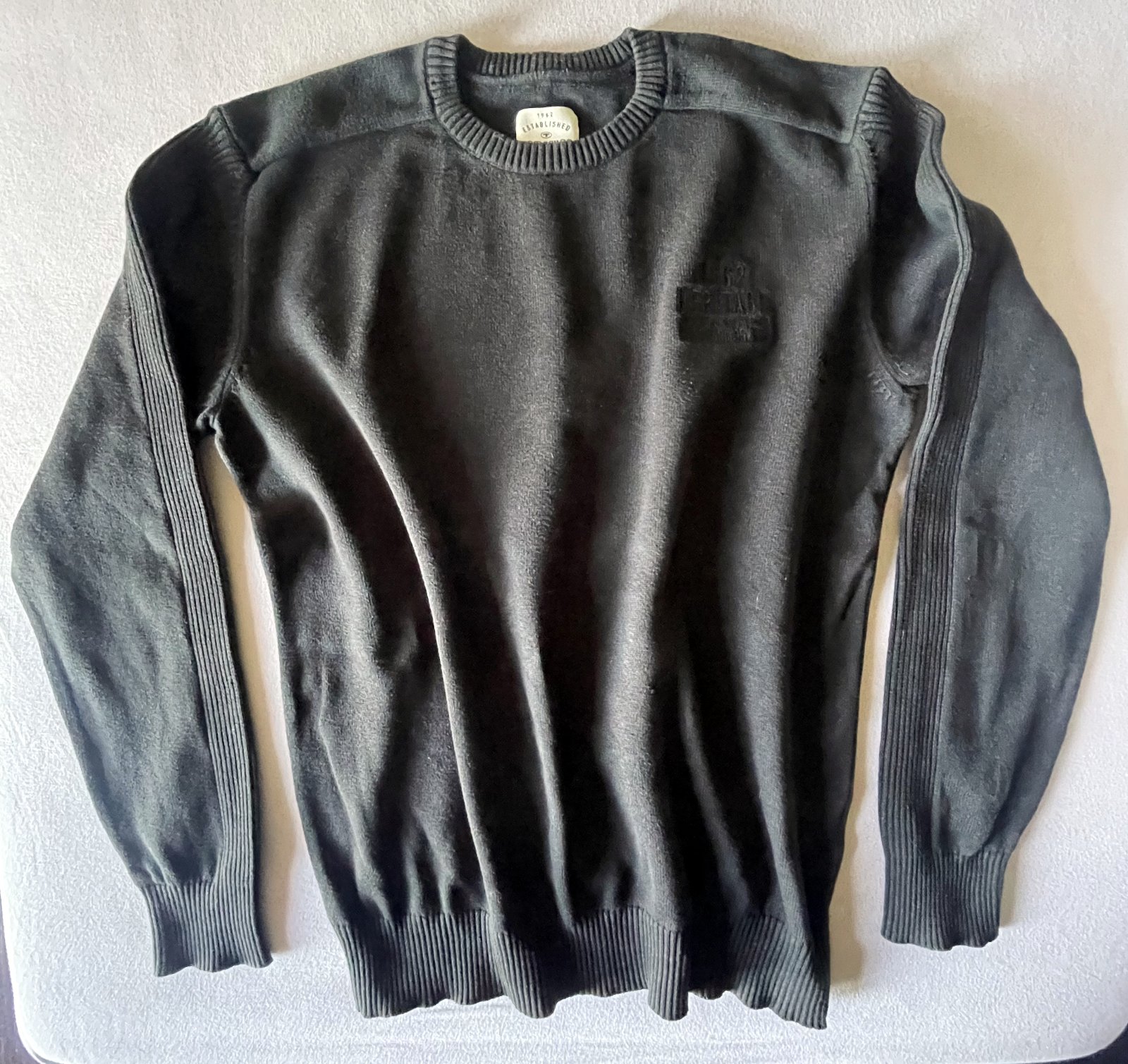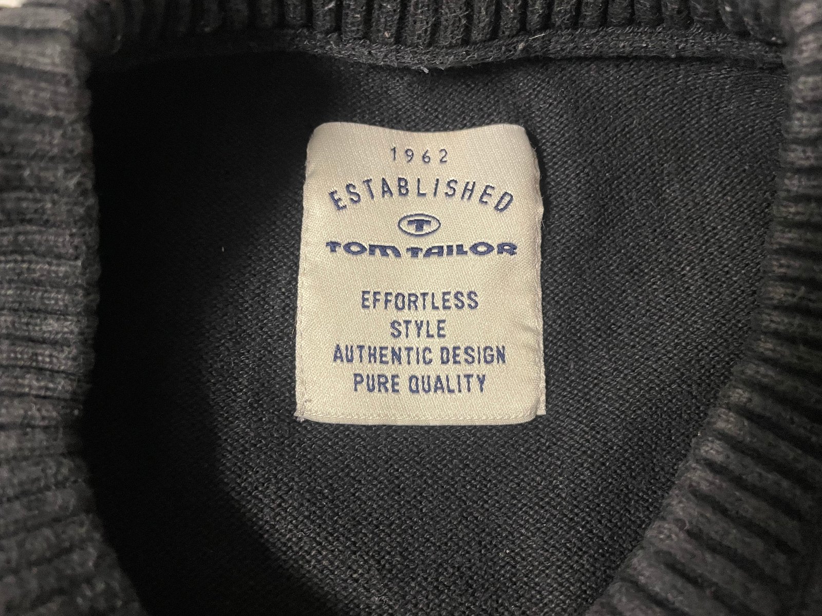 Pánsky čierny sveter Tom Tailor. Rozmery: dĺžka 69 cm, šírka v podpazuší 2x57 cm, dĺžka rukáva od podpazušia 52 cm, od ramena 66 cm.