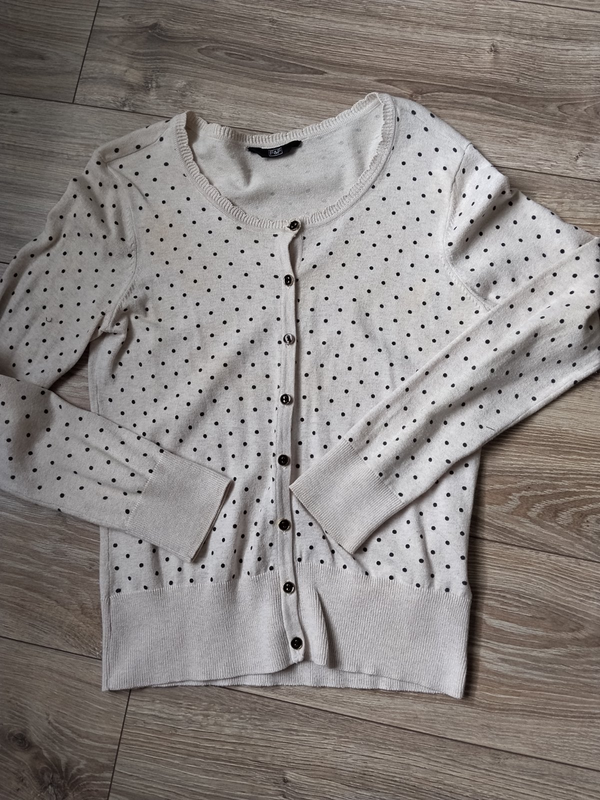 Predám málo nosený svetrík, kupovaný nový, bez žmolkov a iného poškodenia. Béžový s čiernymi bodkami, veľkosť uvedená 42, reálne skôr 38.