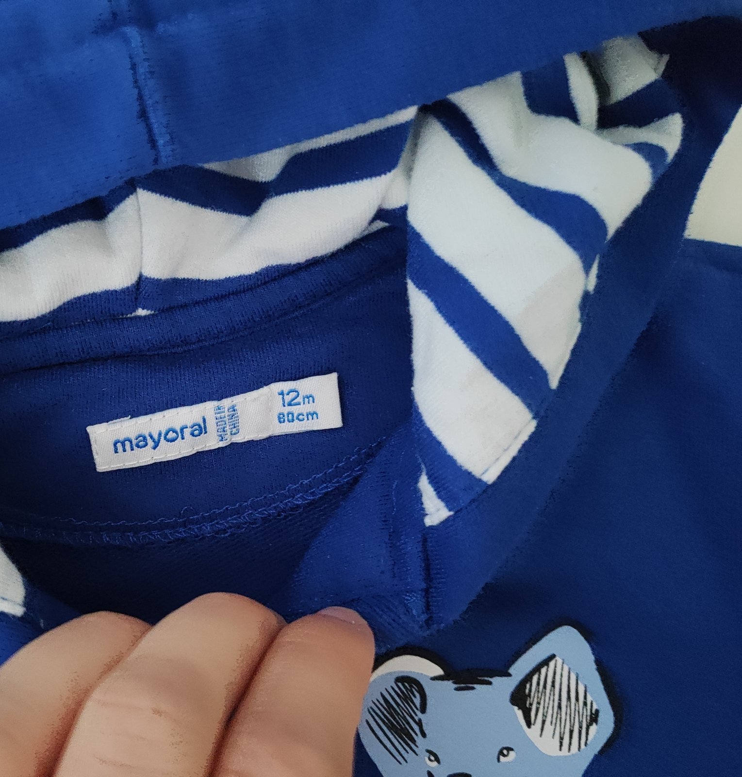 Pekna mikina real je tmavomodra pisu 24 mes 92cm ale mayoral sedi aj skor