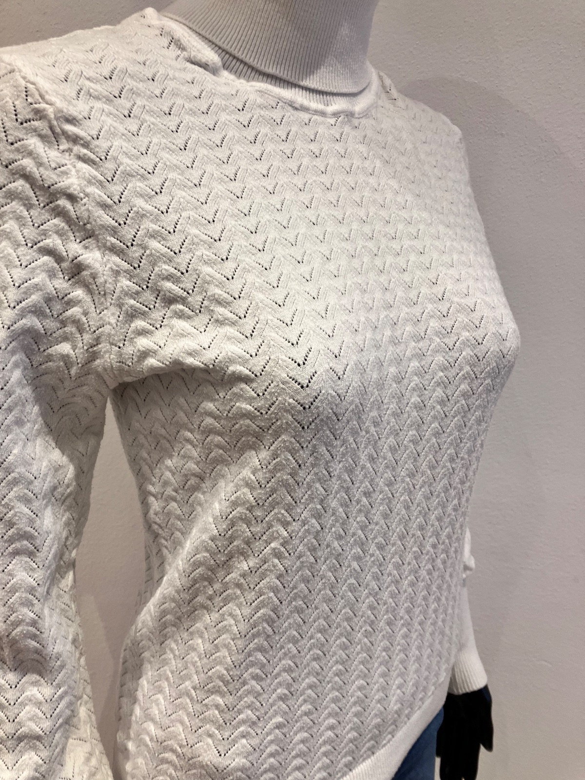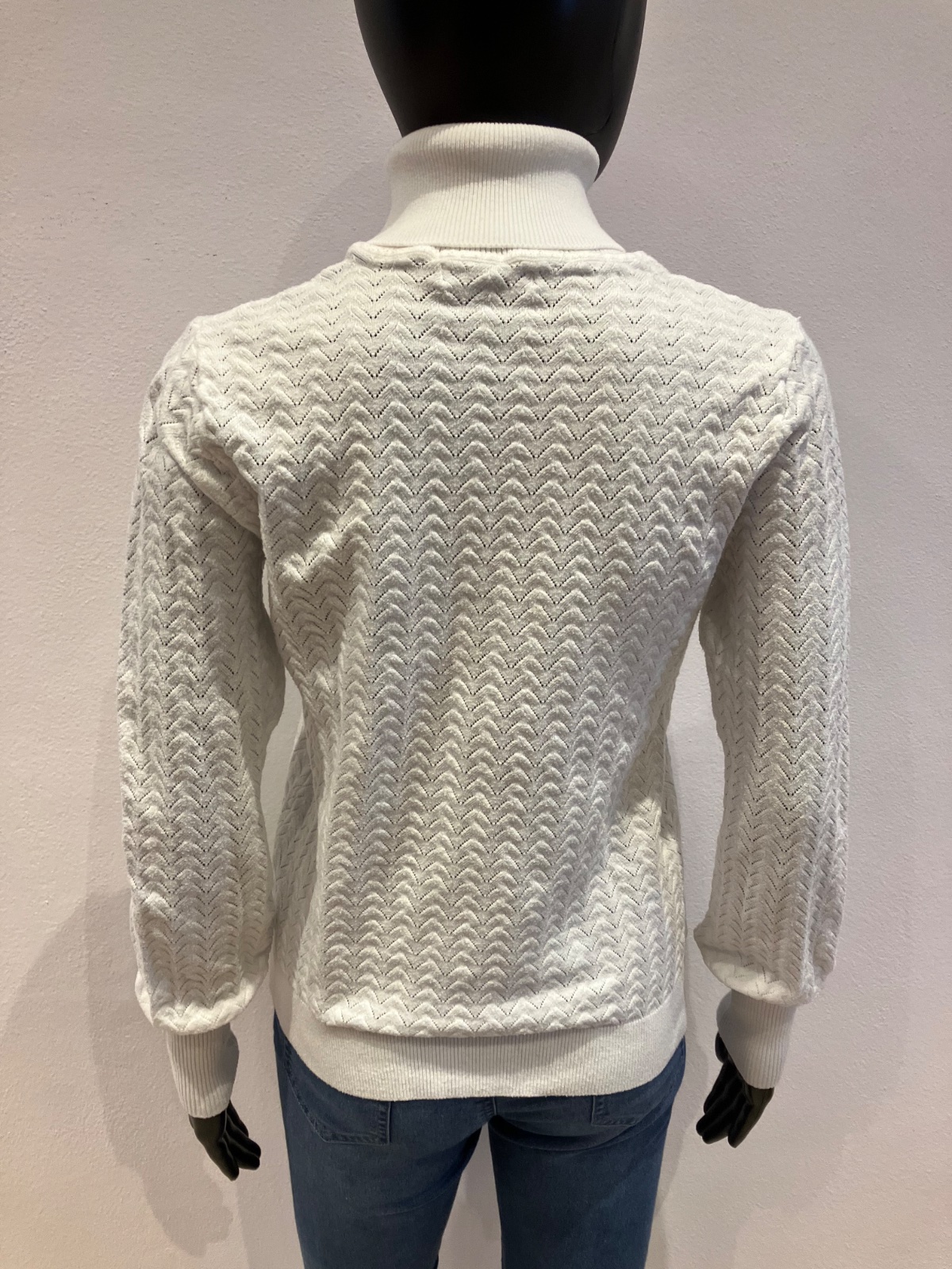 Dámsky sveter s rolákom, biely, tenký, elastický.