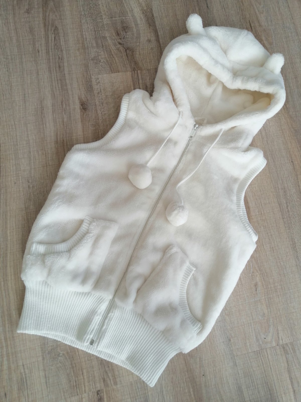 Vesta s kapucňou na zips s príjemného materiálu,