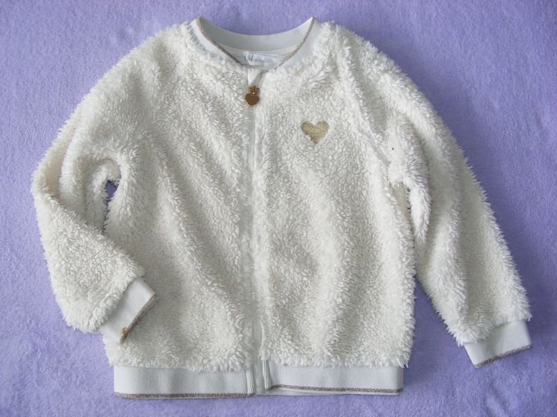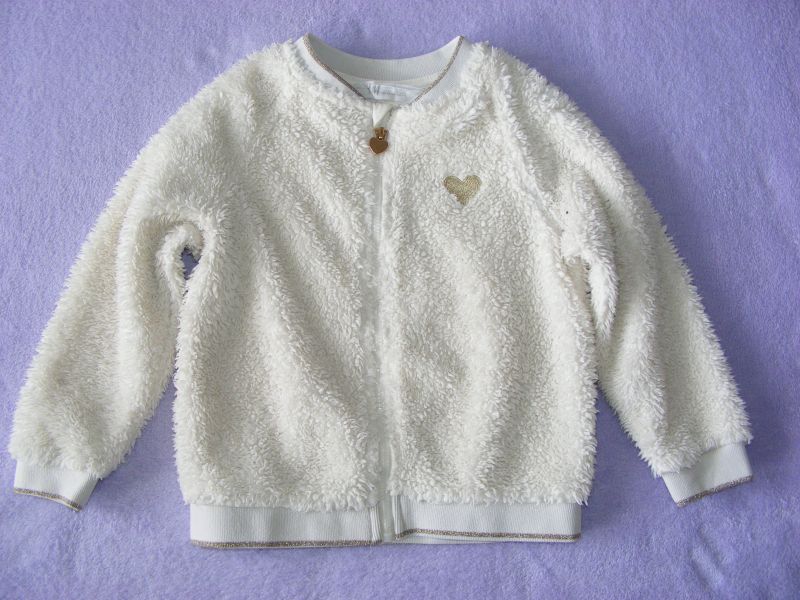 Teplá chlpatá mikina H&M, zapínanie na zips. Farba smotanovobiela, nie je snehobiela.