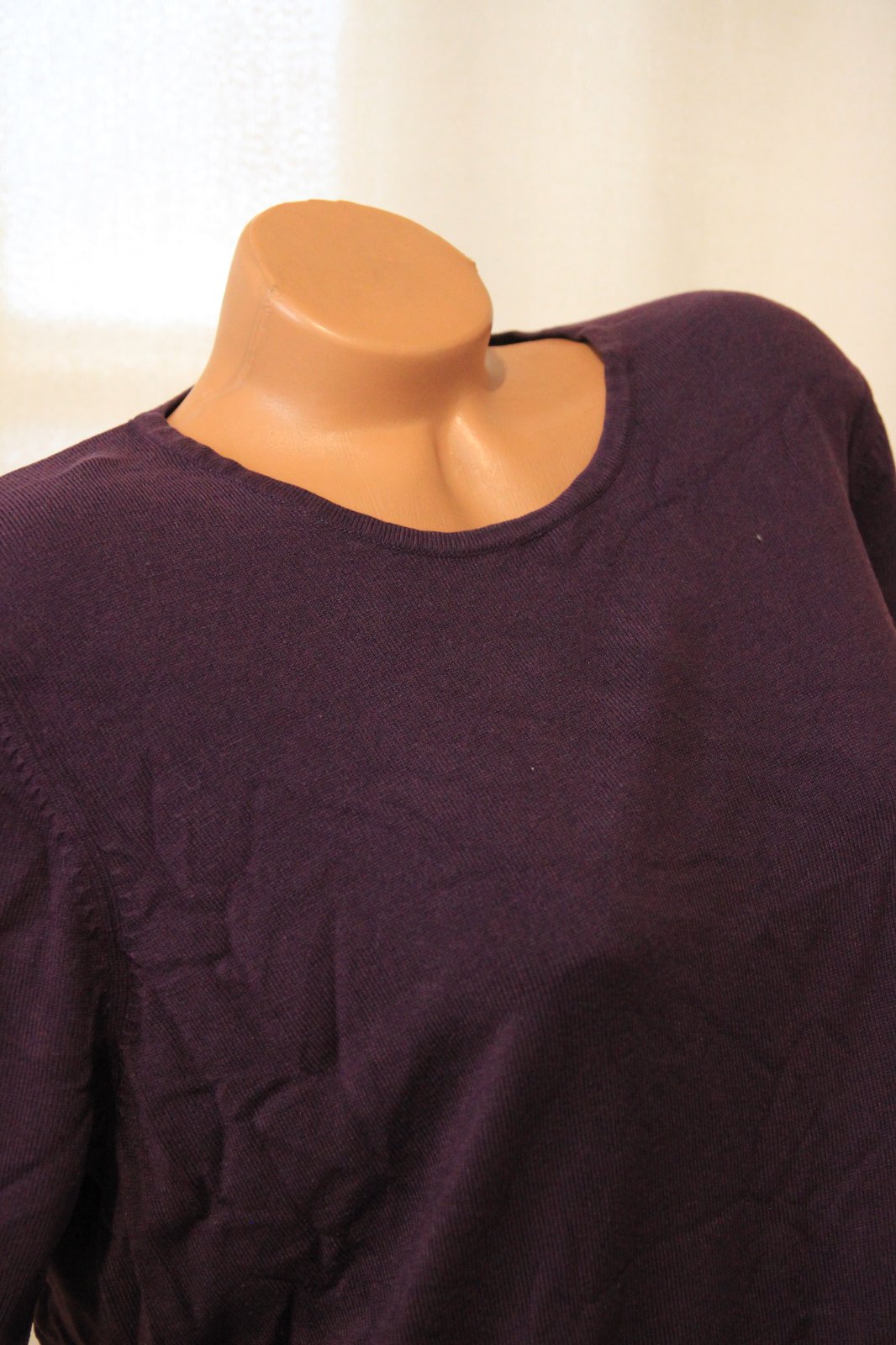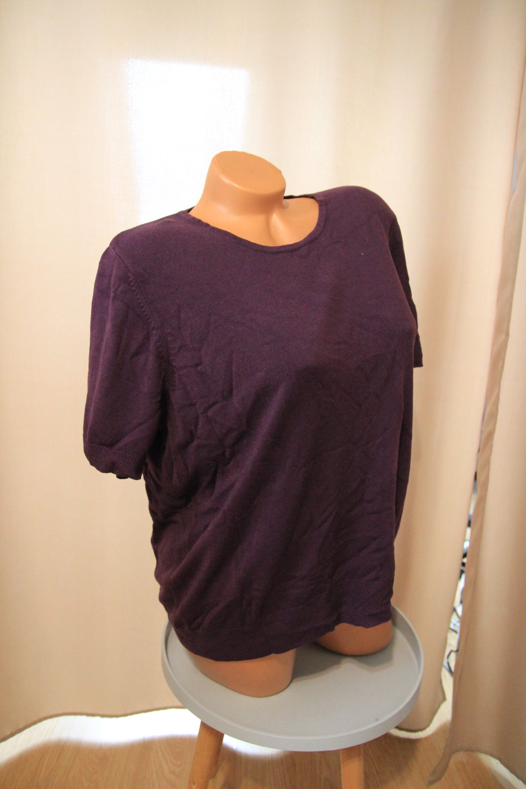 Fialový pletený sveter, veľkosť XXL. Krátke rukávy.