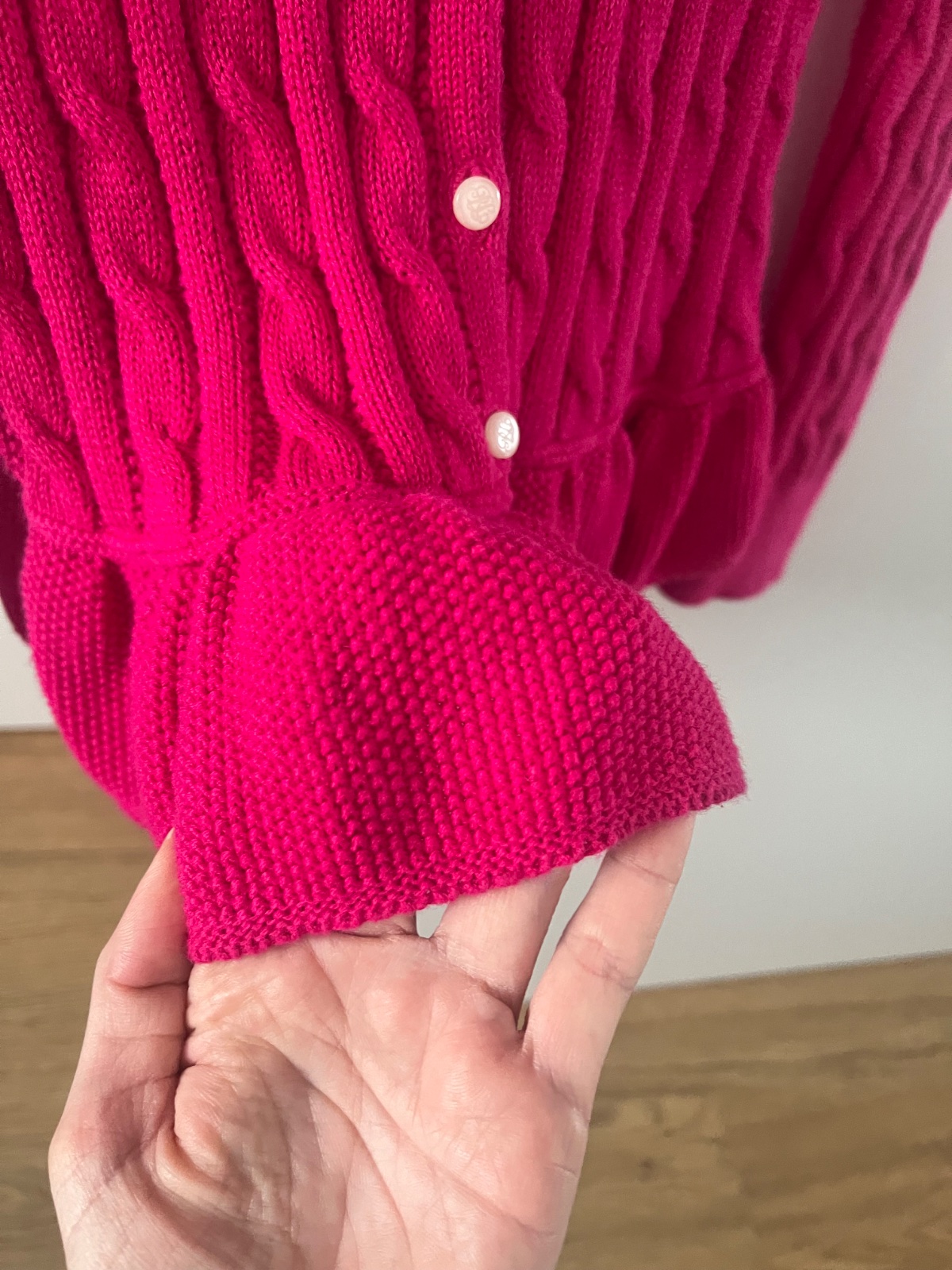 Jedine čo som si všimla aj to len pri detailnom pozretí dva fliačky viď predposledné dve foto- našťastie to spliva s farbou.