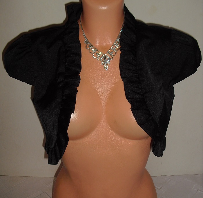 predam nadherne kvalitne, znackove bolerko bussines spolocenske, zdobene volanikmi, velkost uvedena 36/s. je nadhernom vybornom stave. dlzka cca 34 cm.