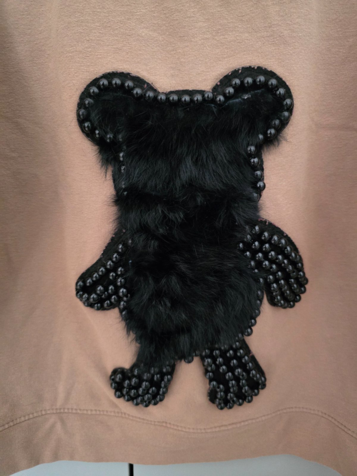 Bez poškodení a žmolkov. Medvedík je tvorený s kožušinky a perličiek.