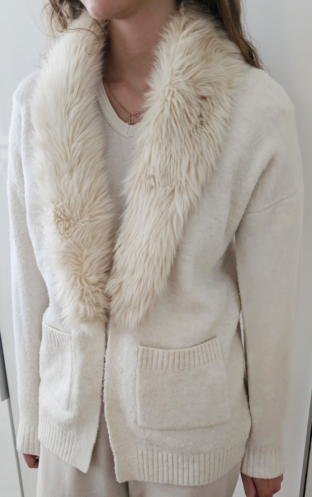 Predĺžený sveter - kardigan s kožušinou