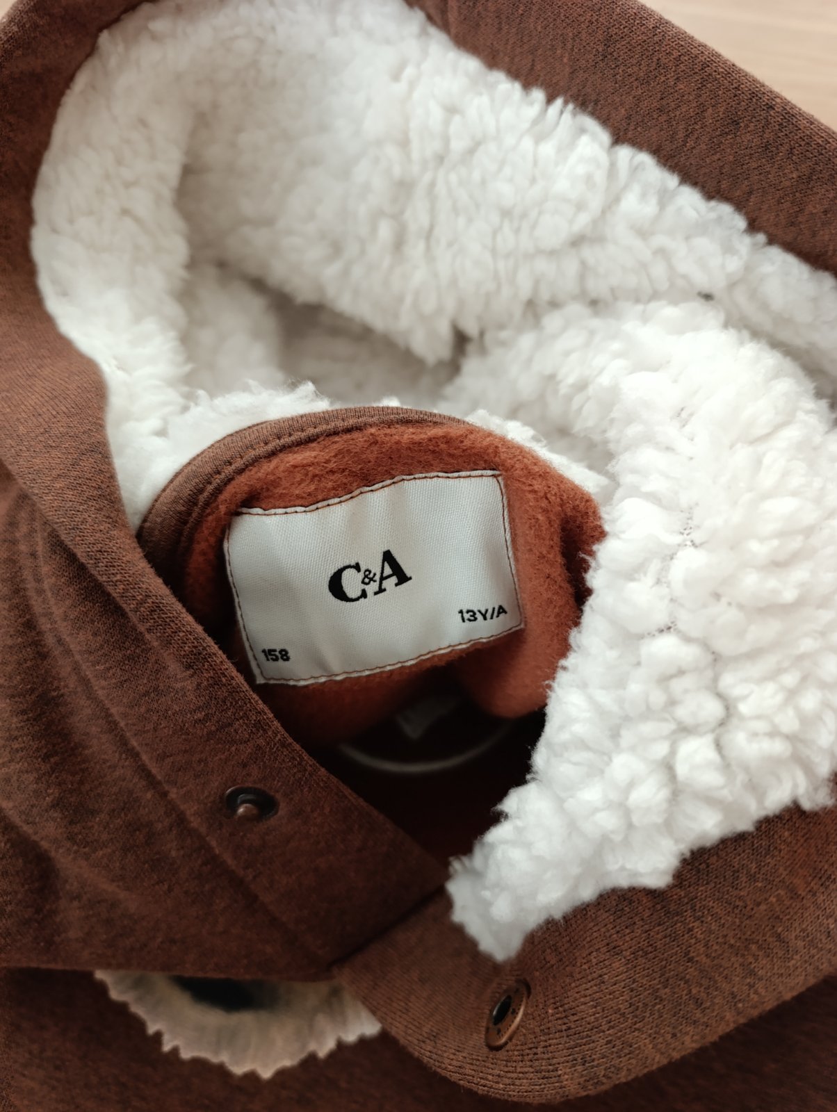 Predám zateplenú mikinu C&A vo veľkosti 158/164 v 100% stave. Kombinácia farieb tmavomodrá a sivá. Dĺžka cez chrbát 63cm, šírka pod pazuchami 49cm, dĺžka rukáva od krku 67cm.