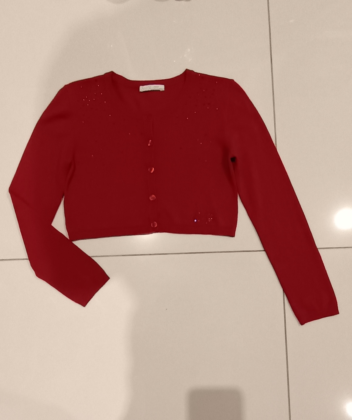 Úžasný, jemnučký kašmírový bolerkový svetrík, zdobenie vpredu aj logo s kamienkov, v super stave, bez poškodenia a žmolkov.