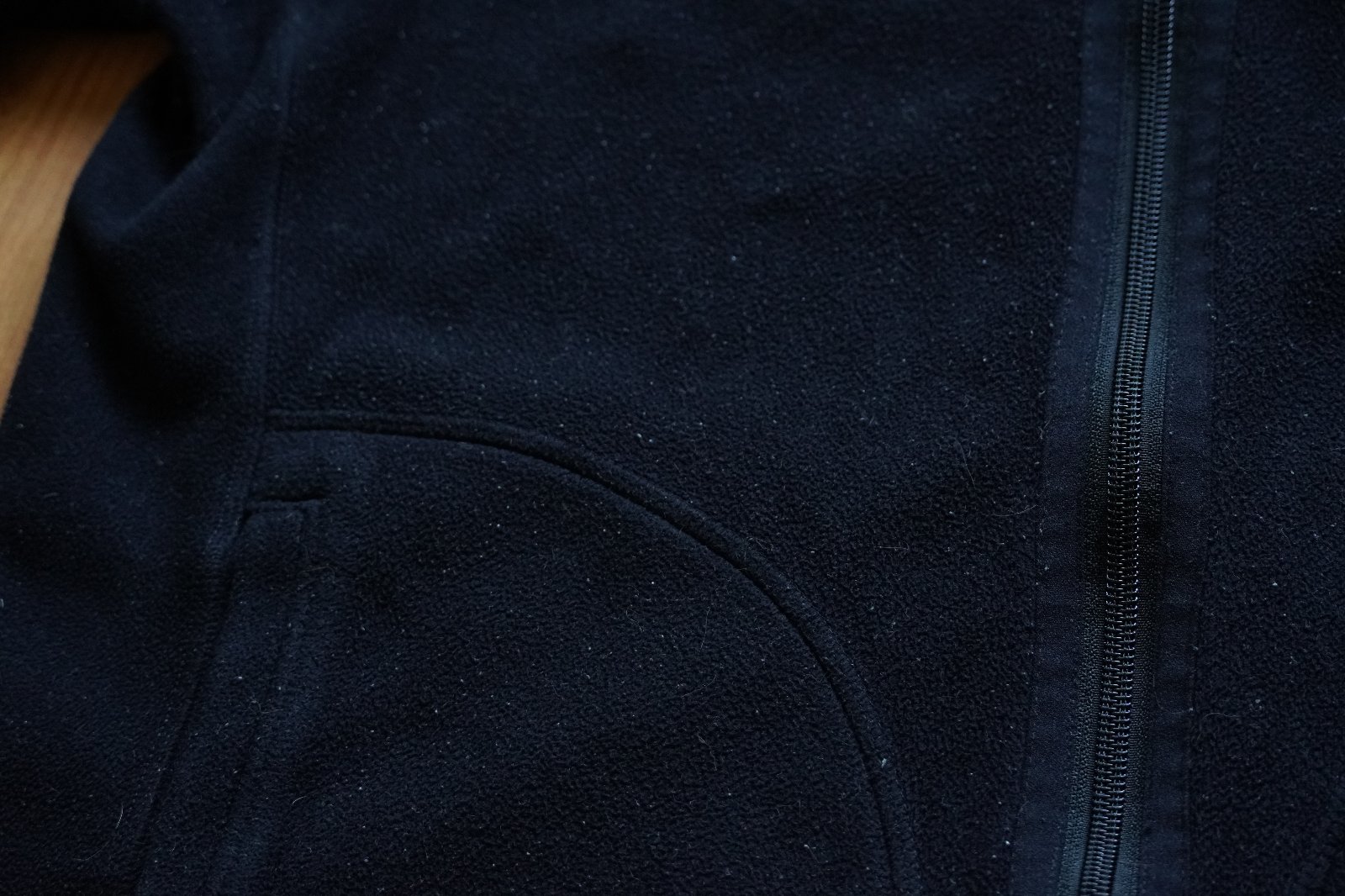 Čierna strana má mierne žmolky z prania (pozri foto), zips trochu ošúchaný, inak je v poriadku, žiadne dierky.