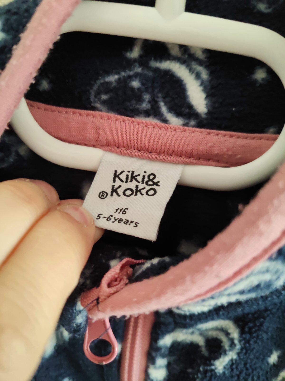 Predám peknú modrú mikinu veľ.116,značka Kiki&Koko,má akurát na kapucni dierku inak bez poškodenia,cena 1€