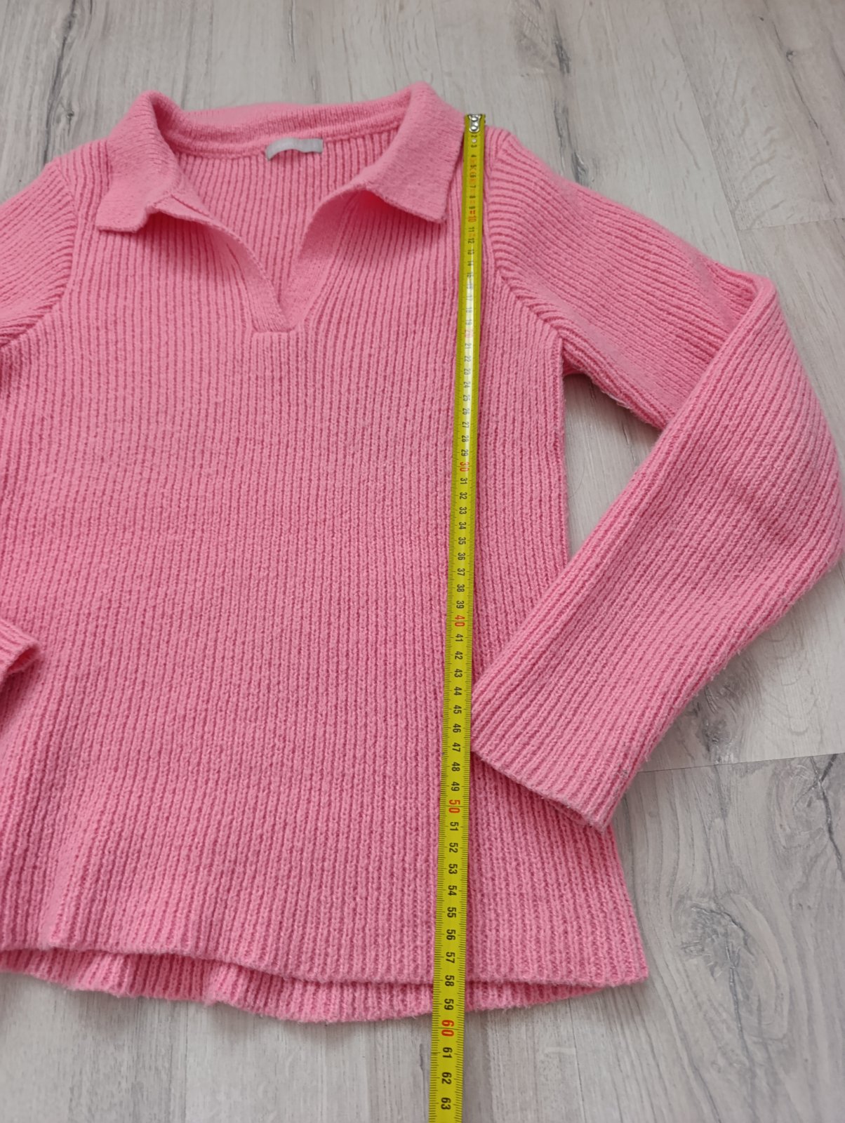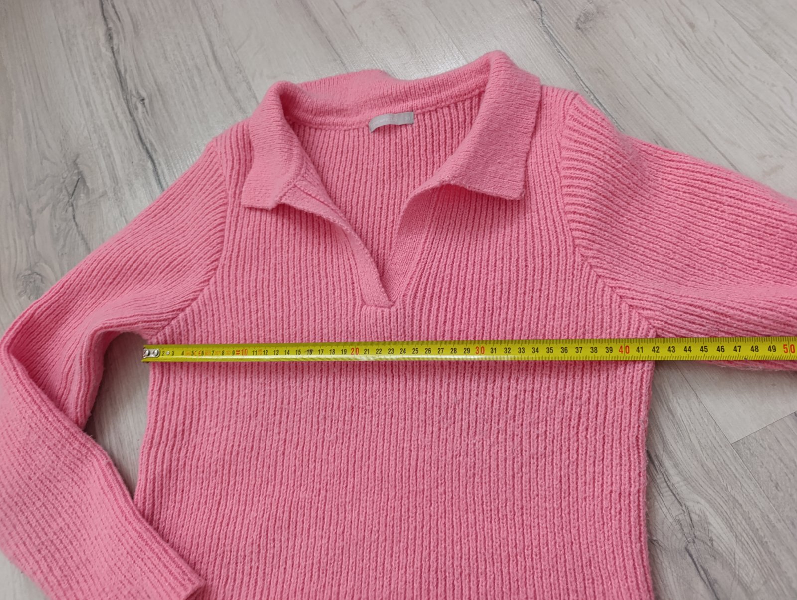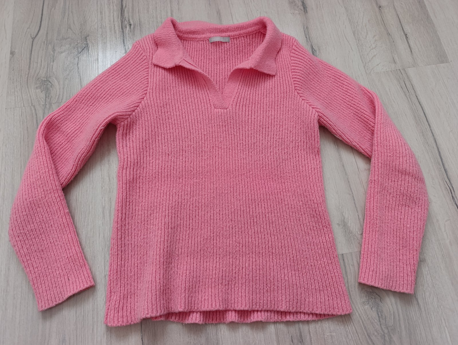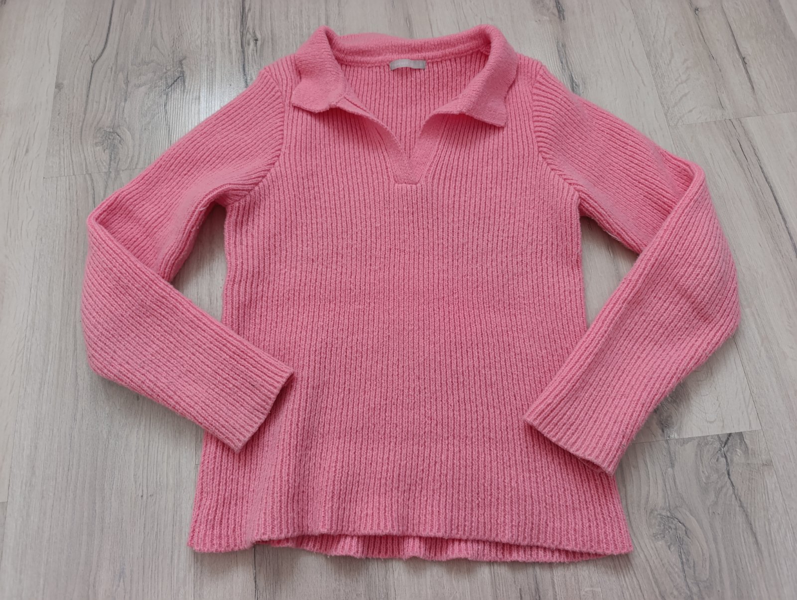 Sveter krásnej cukríkovo ružovej farby (naživo ešte krajšia) s limcom, je mäkký a elastický, veľmi pohodlný. Pri výmene 7€