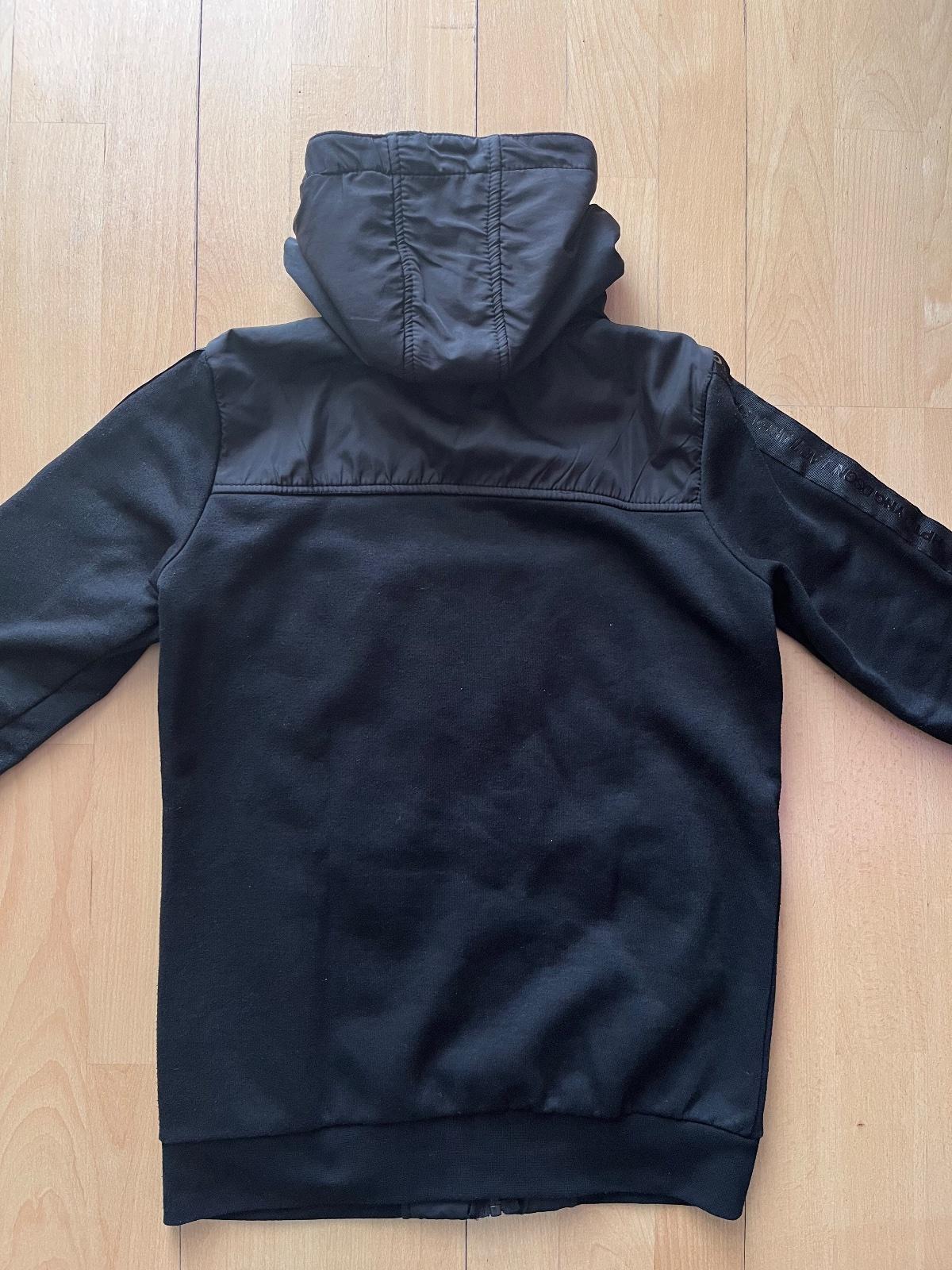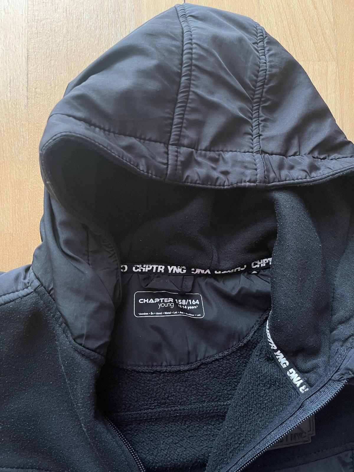 Predam športovú mikinu Chapter Young, cierna, velkost 158/164, na donosenie, nema poskodenia ziadne, len vidno že bola nosena, jemne zmolky, synteticky material na sport. Zadna dlzka 65 cm, sirka pod pazuchami 50 cm, dlzka rukava od krku 69 cm. BA - Ruzinov.