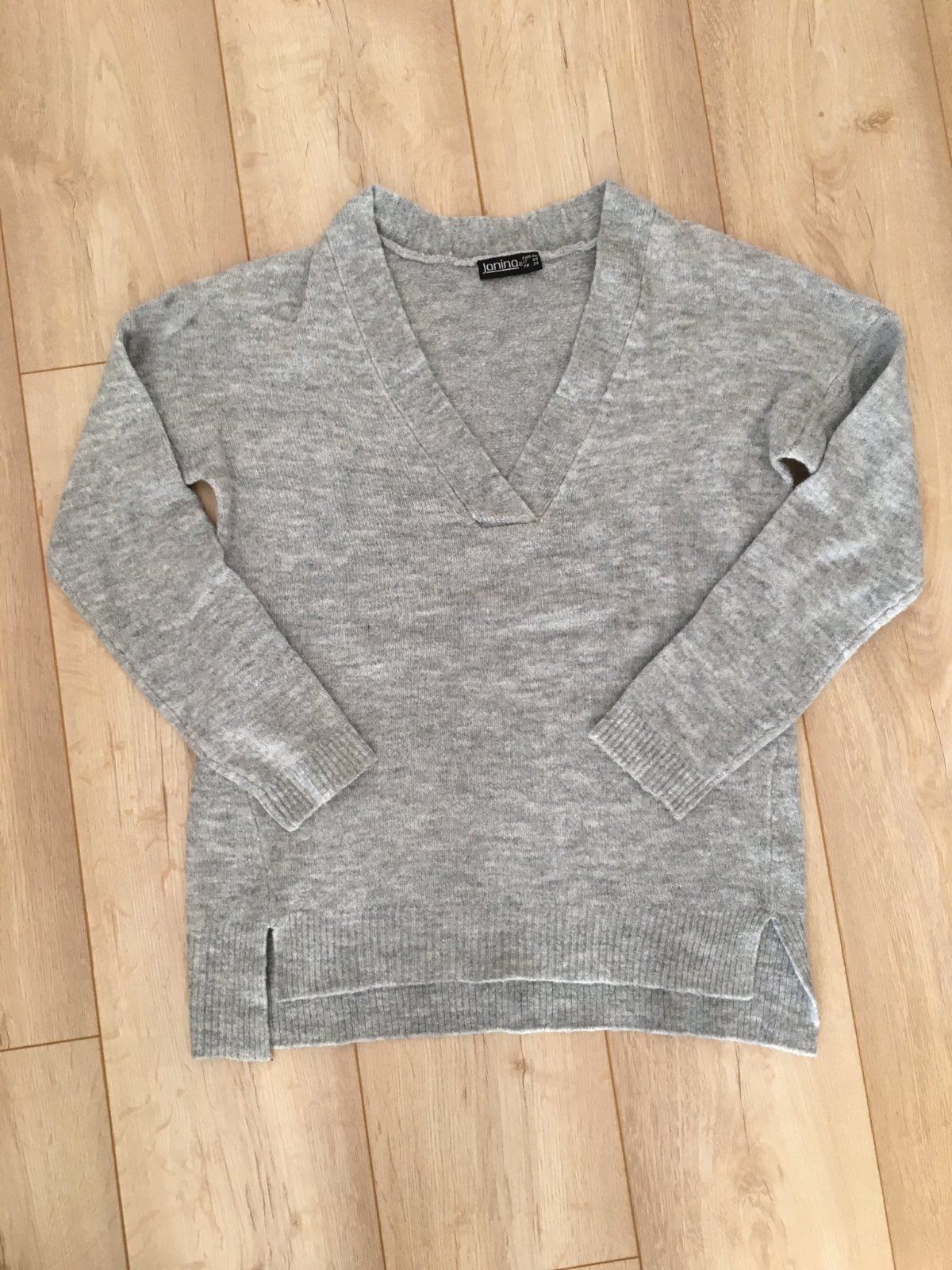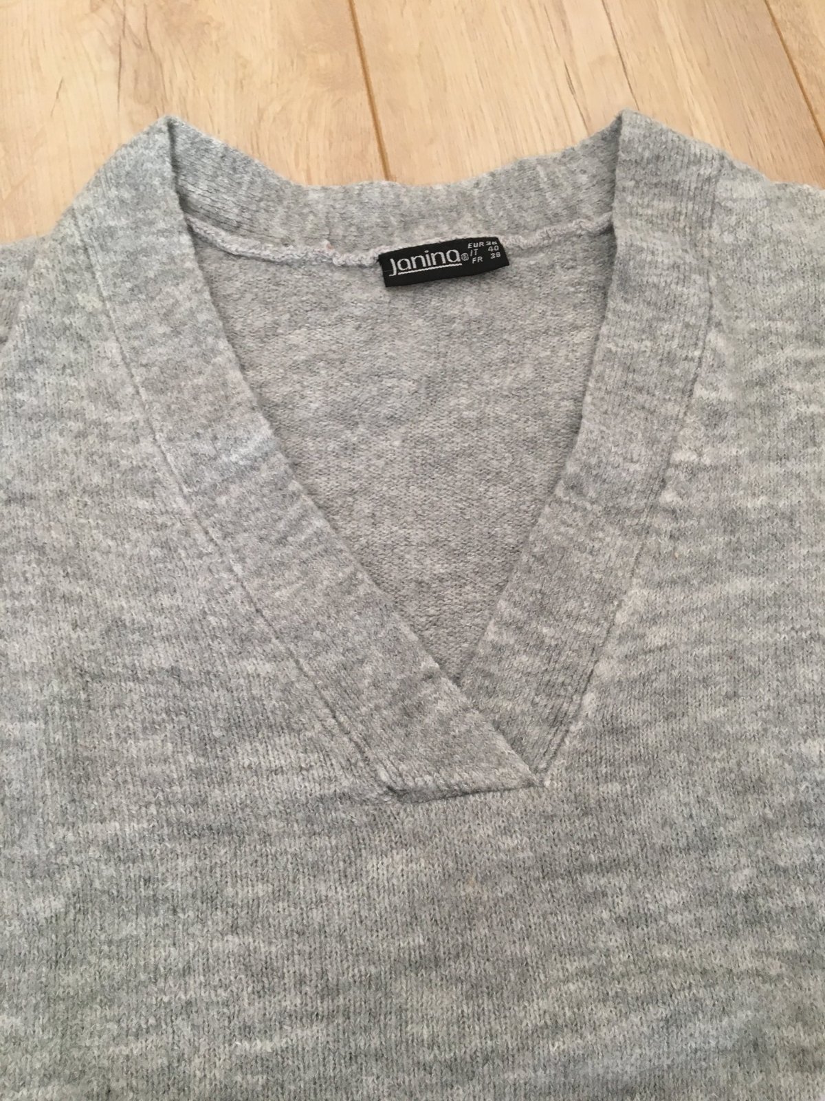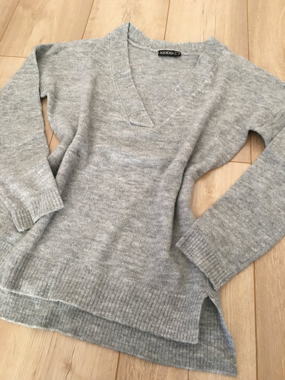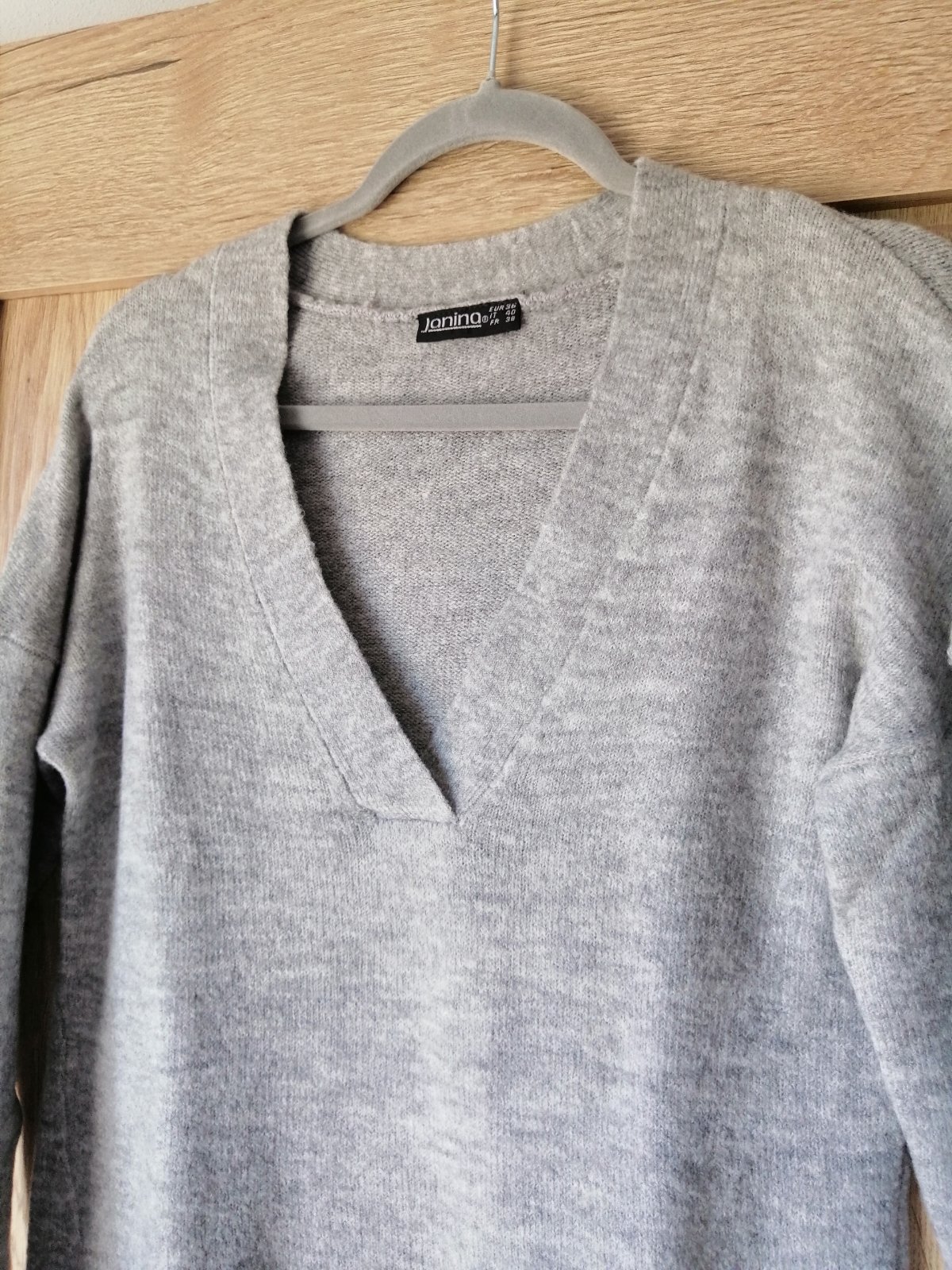 Predám sivý vlnený sveter. Sveter má V výstrih a veľmi pekne sedí na postave.