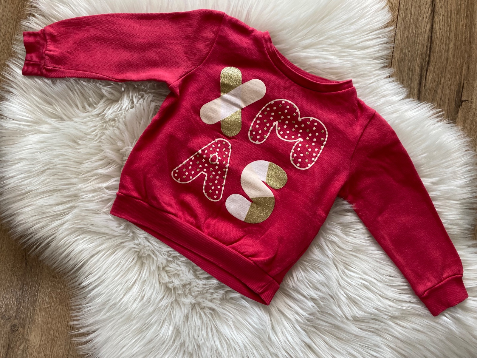 Predá červenú mikinku s flitrami a spolu s ňou aj tričko s dlhým rukávom vo výbornom stave