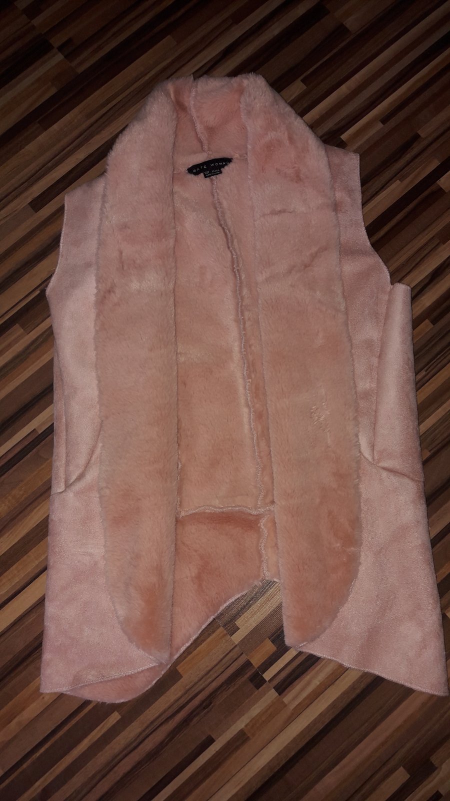 Nenosená vesta. Francúzska zn. Xanaka. Dĺžka na chrbáte 53 cm, šírka popod ramená 39 cm, šírka v páse 35 cm.