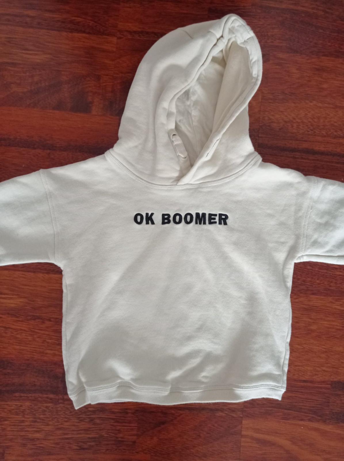 Takmer nepoužívana teplá štýlová mikina v top stave, aj keď je na nej uvedená veľkosť 110 odporúčam skôr na 104cm, v prípade záujmu premeram.