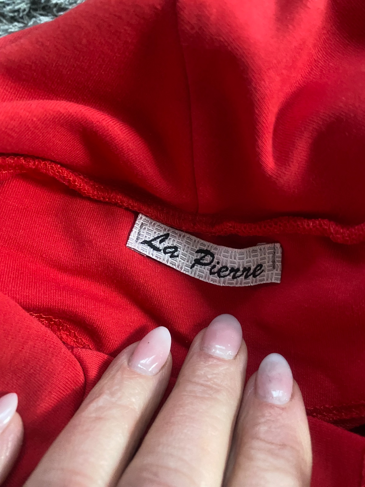 Dámsky červený pulóver zn. Kappa, s jemnými pletenými osmičkami, pekný, veľmi zachovalý a bez poškodenia.