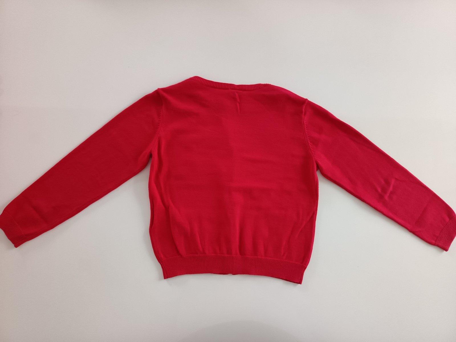 Červený sveter so srdiečkami, zapínanie na gombíky, bez poškodenia