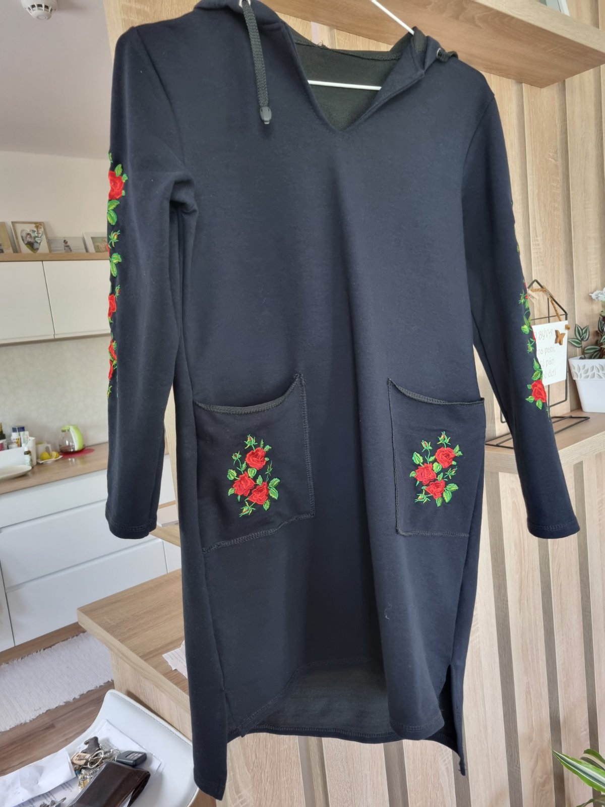 Predĺžená mikina s ľudovým vzorom.Oblečená 1x.