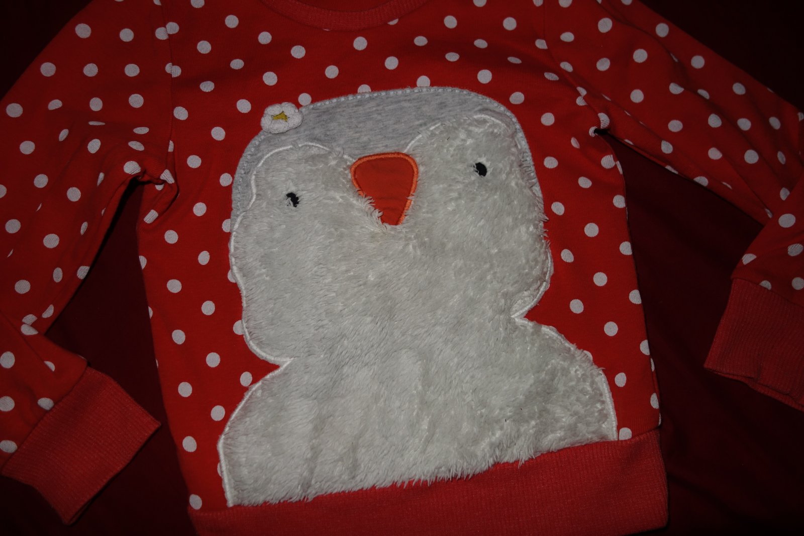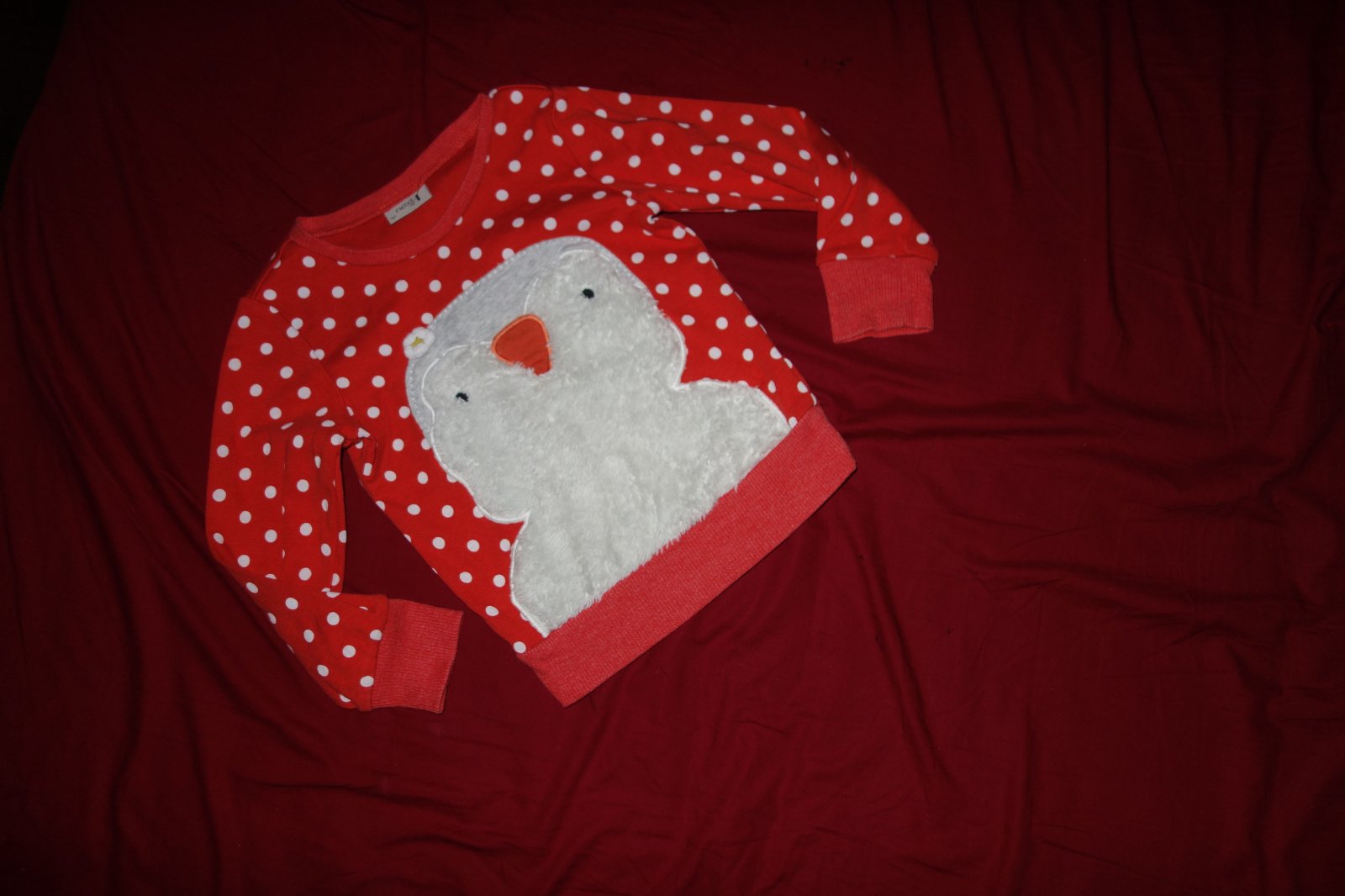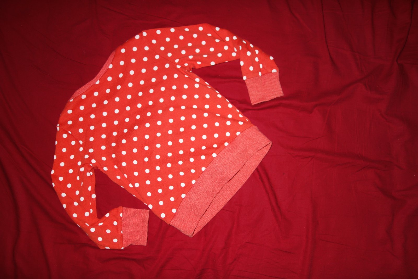 Krasna mikinka vo velmi dobrom stave. Je taka cervena do oranzovo-ruzova. Je tenka.