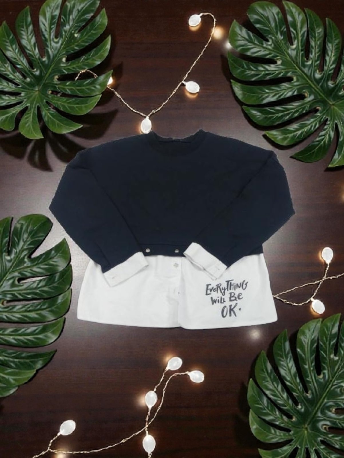 detská tmavomodrá mikina so všitou časťou košele
