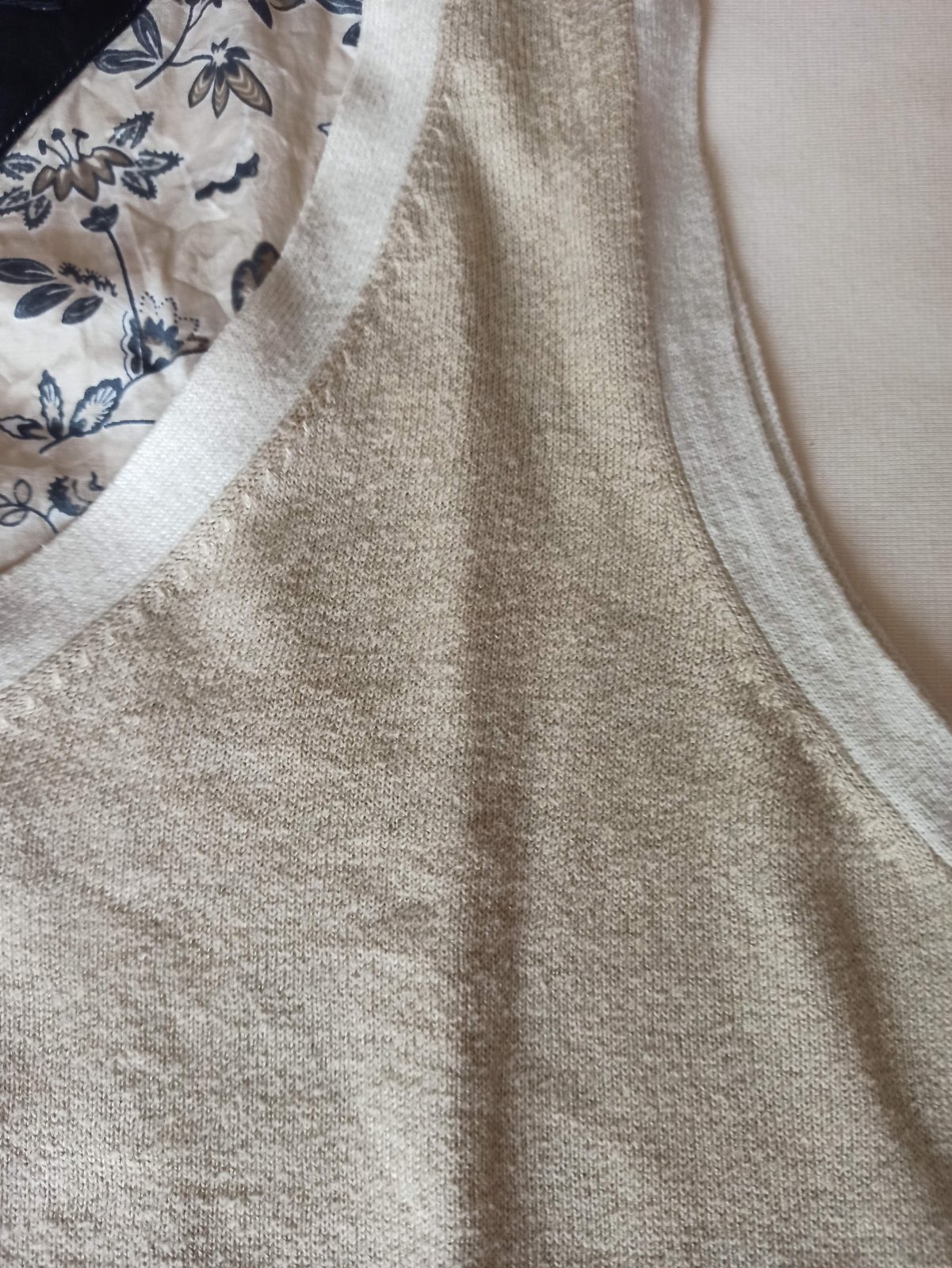 Tenká vesta, predná časť bavlnená, elastická zadná hodváb, dĺžka 58 cm, šírka 44 cm, predná časť sa natiahne