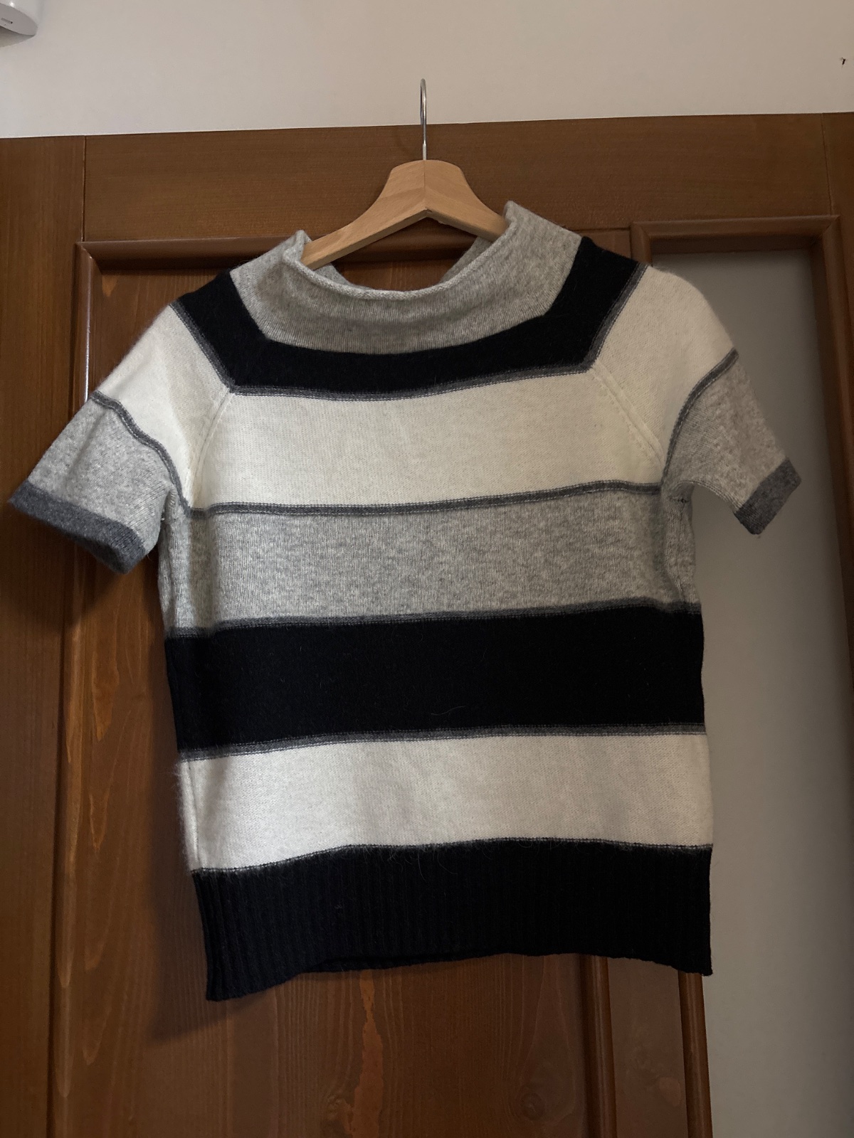 Predám krásny pulover-sveter buelovietnej kombinácie, s krátkymi rukávmi. Veľmi pekne sadne sk si dáte pod čierne tričko s dlhými rukávmi. Je príjemný na dotyk a veľmi módny.