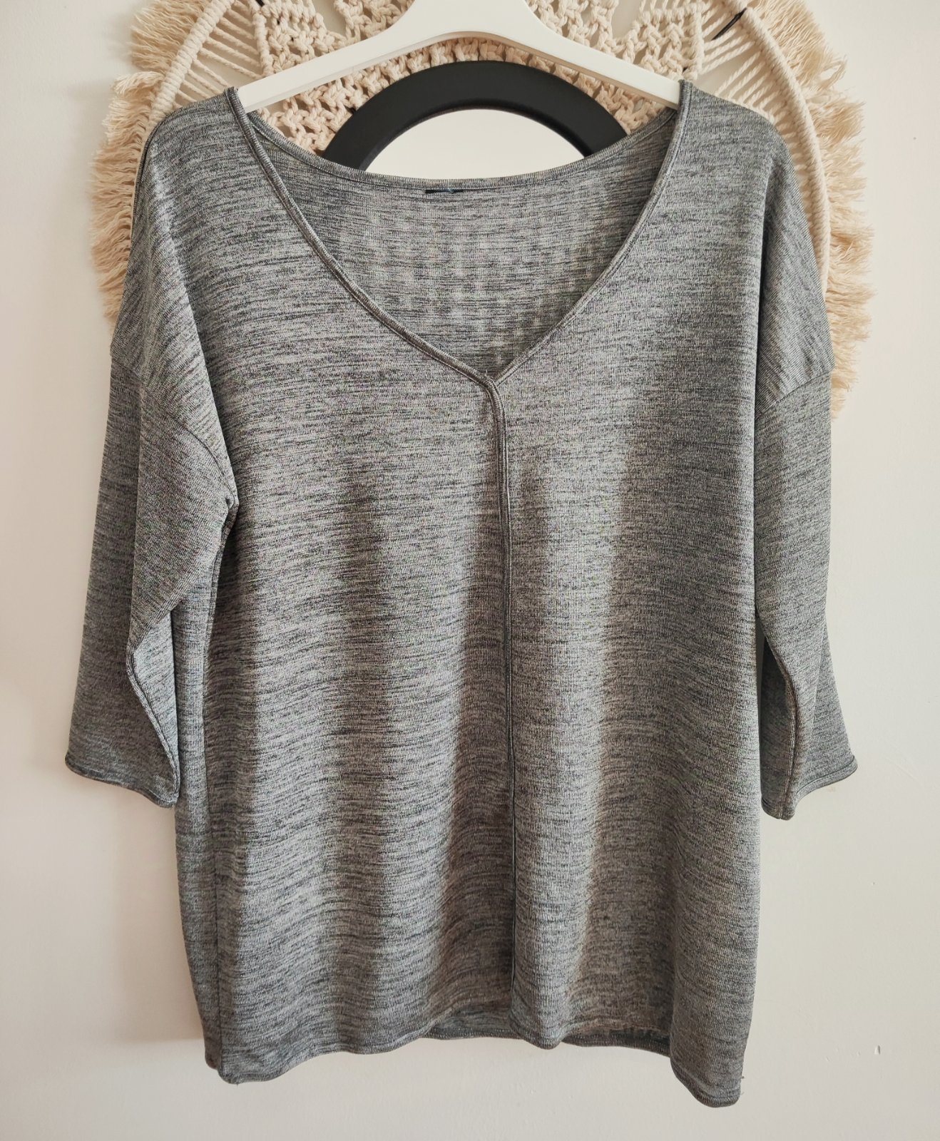 Dámsky sveter s kamienkami. Tenšia. Elastická. Materiál:52%viskóza,27%polyester,21%polyamid. Veľkosť M/L/XL. Krajina pôvodu: Taliansko. ROZMERY: Celková dĺžka vzadu: 61cm, Dĺžka rukáv od krku: 67c...
