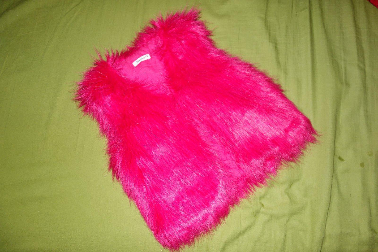 Krasna vesticka z umelej kozusinky vo vybornom stave- na podsivke ma maly fliacik, ale asi pojde vyprat.