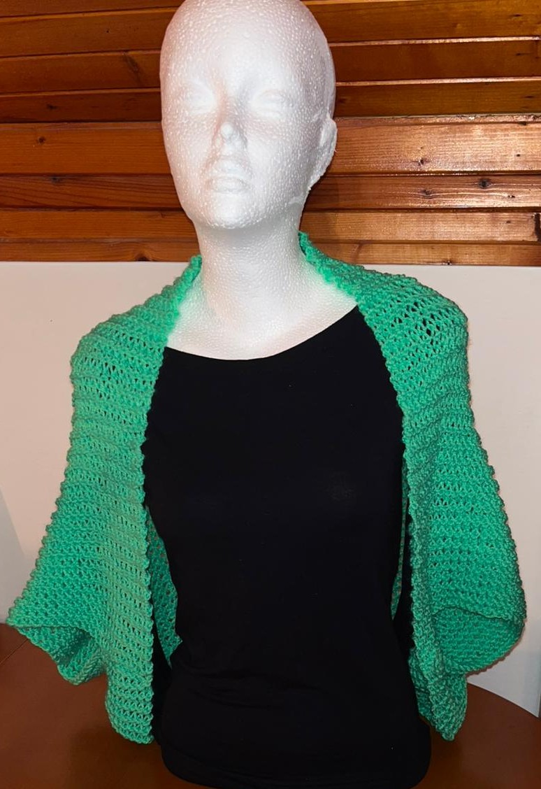Bolerko je peknej zelenkavej farby,voľného vzoru. Len jeden kúsok,hneď dostupný.