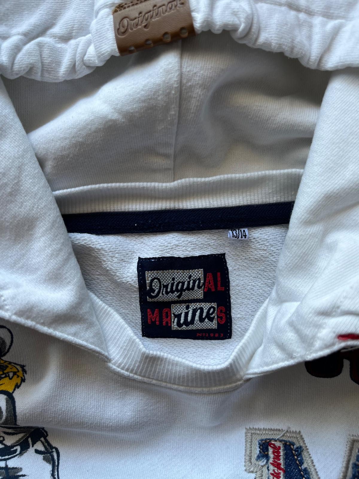 Predam 1x oblečenú bavlnenu mikinu Original Marines, uvedena velkost 13/14 (zodpoveda na cca 12 rokov max.), super stav, kapucna podsita bavlnenym upletom. Zadna dlzka od krku 57 cm, sirka pod pazuchami 47 cm, dlzka rukava od krku 63 cm. BA - Ruzinov.